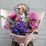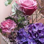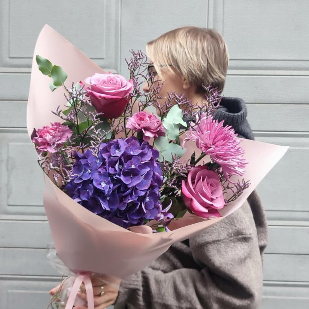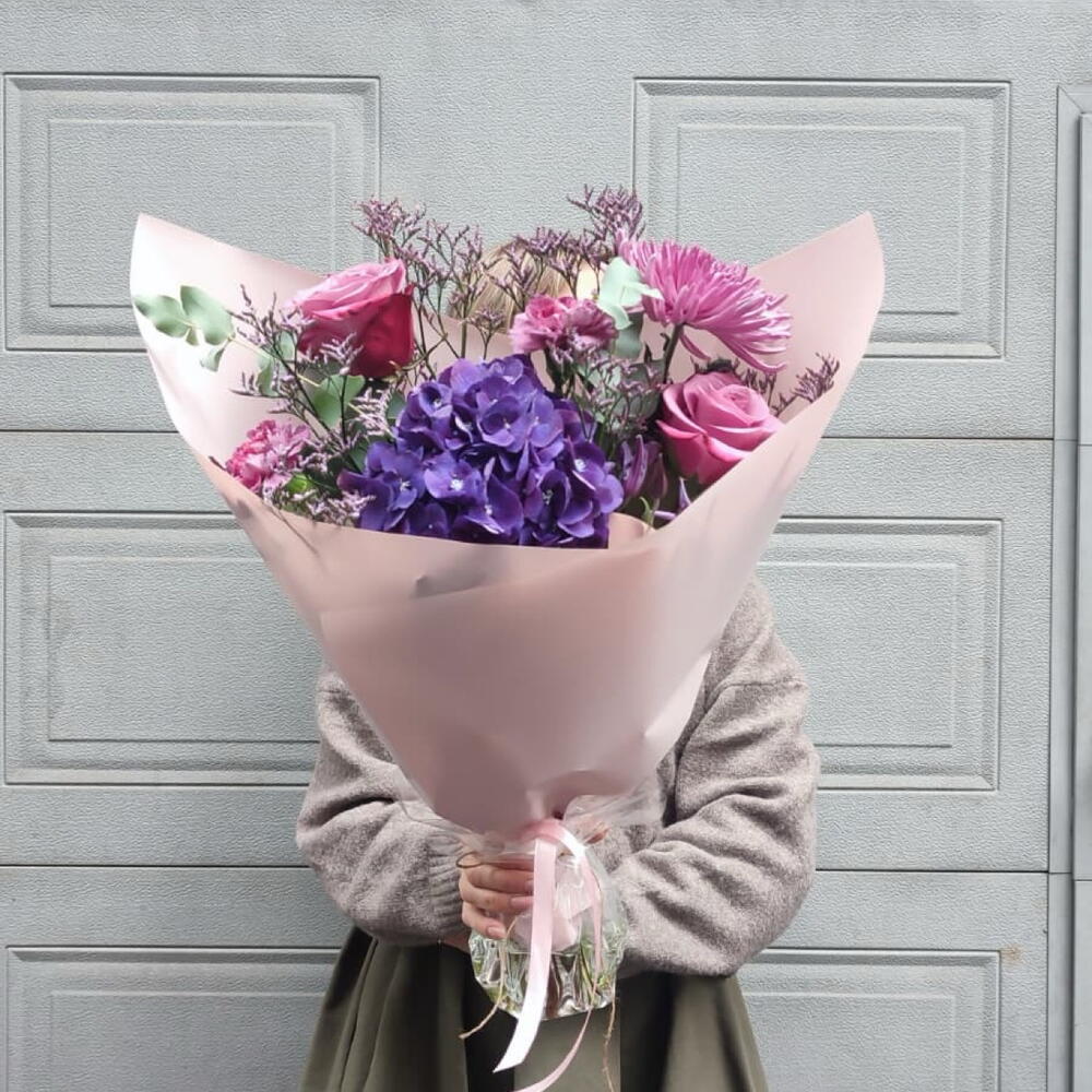 Hydrangea - 1 pcs Limonium - 2 pcs Clematis - 2 pcs rose - 2 pcs dianthus - 2 pcs chrysanthemum - 1 pcs