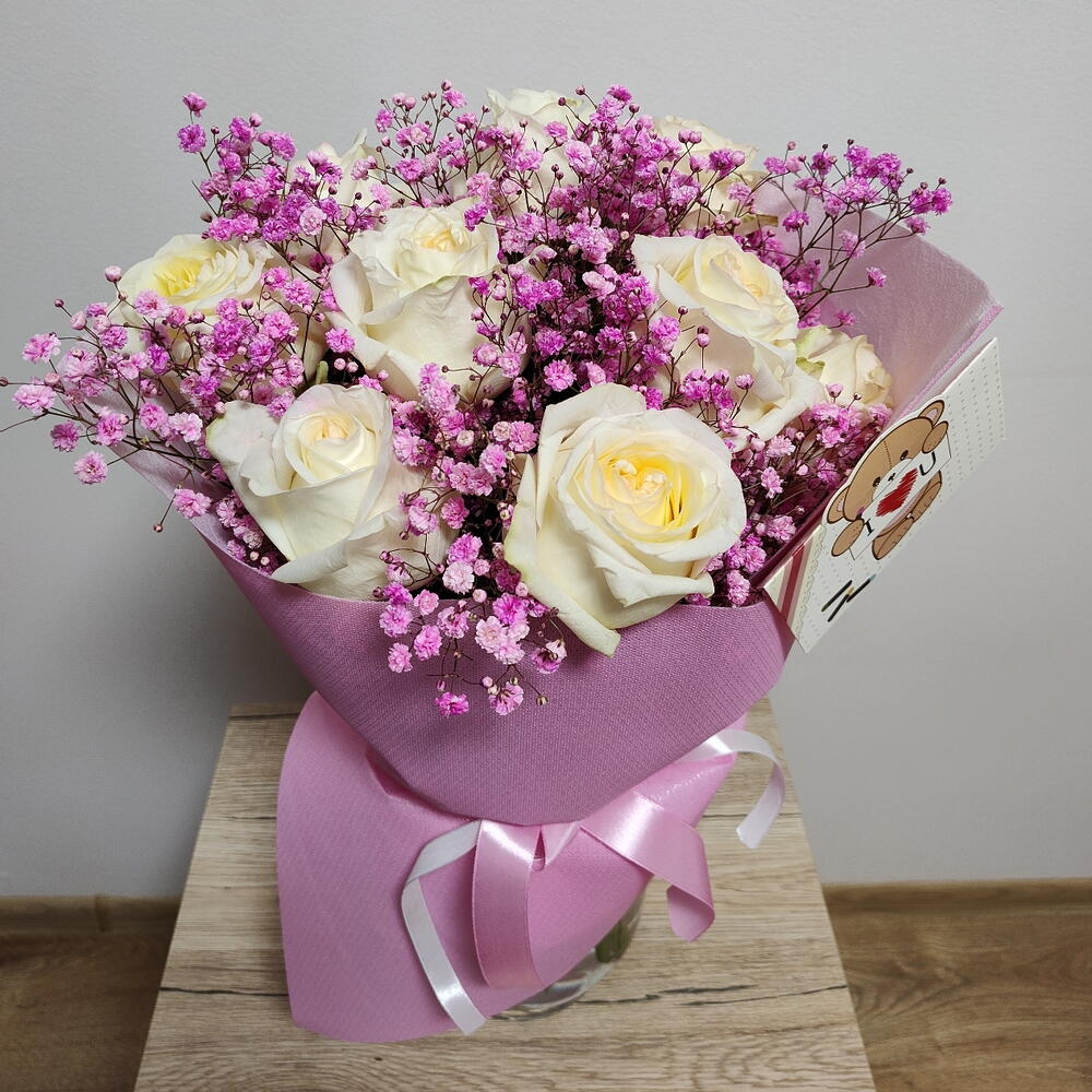 baby's breath flowers - 5 pcs roses - 9 pcs