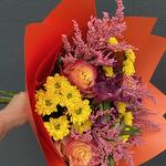 Chrysanthemum - 3 pcs Alstroemeria - 5 pcs rose - 3 pcs paper - 3 pcs soledago - 4 pcs