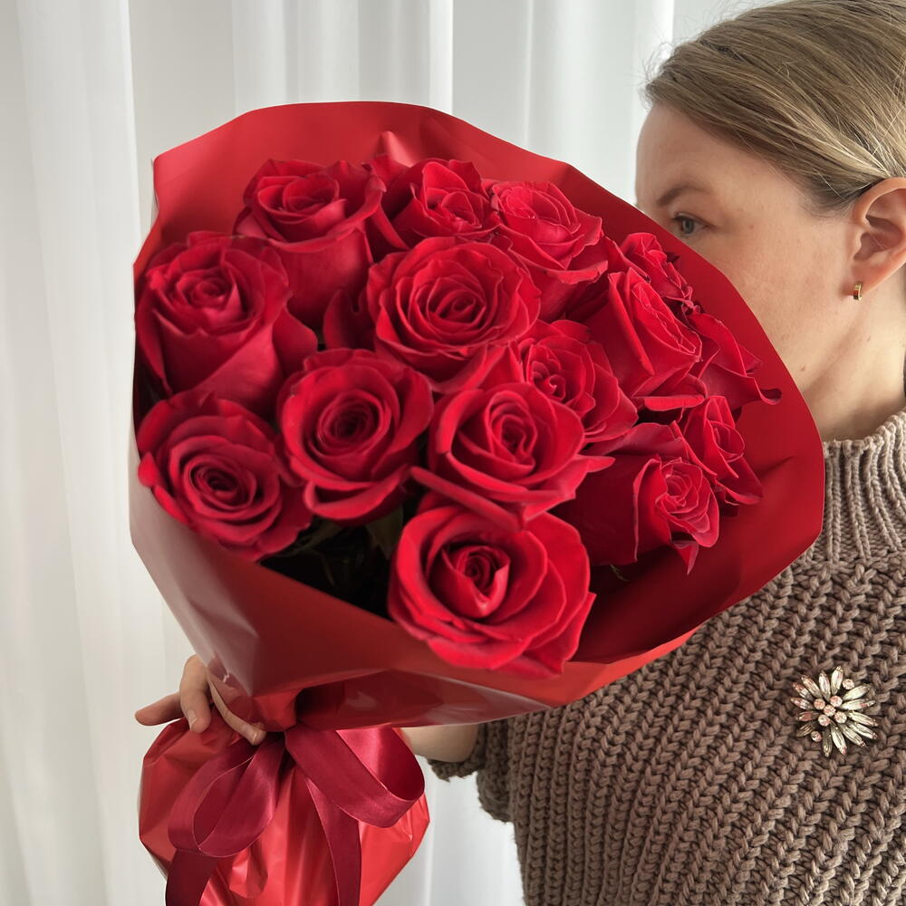 red ekvadora roses - 15 pcs