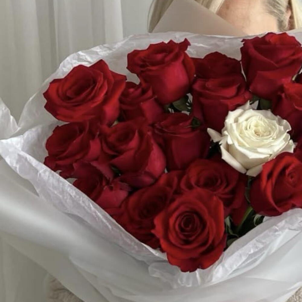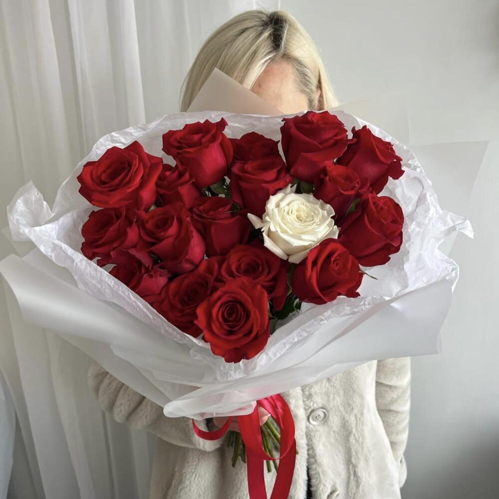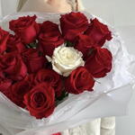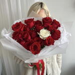Red rose - 18 pcs White rose - 1 pcs greeting card - 1 pcs