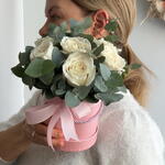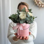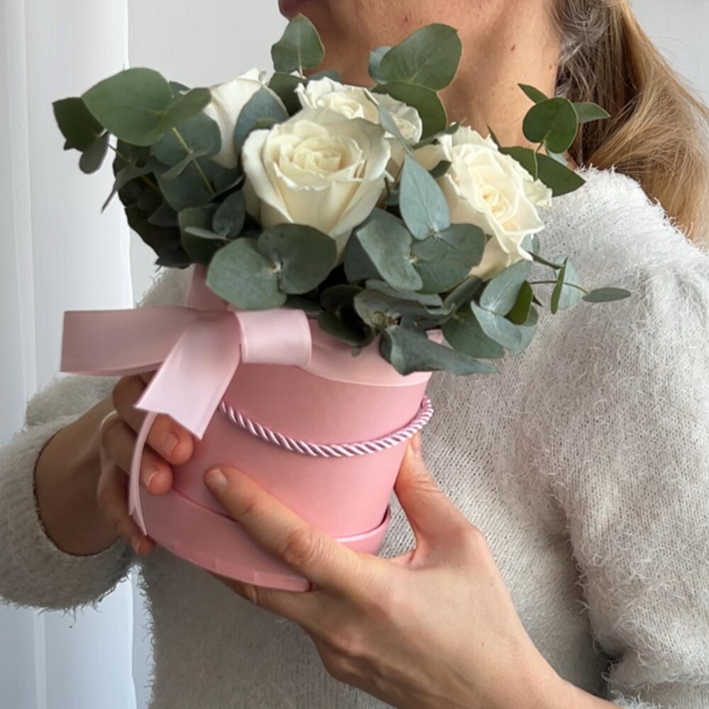 eucalyptus - 3 pcs greeting card - 1 pcs hat box - 1 pcs roses - 7 pcs