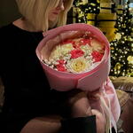 dianthus - 5 pcs baby's breath flowers - 3 pcs rose - 6 pcs floral paper packaging - 1 pcs
