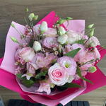 Alstroemeria - 3 pcs Lisianthus - 2 pcs rose - 4 pcs paper - 2 pcs wax - 3 pcs