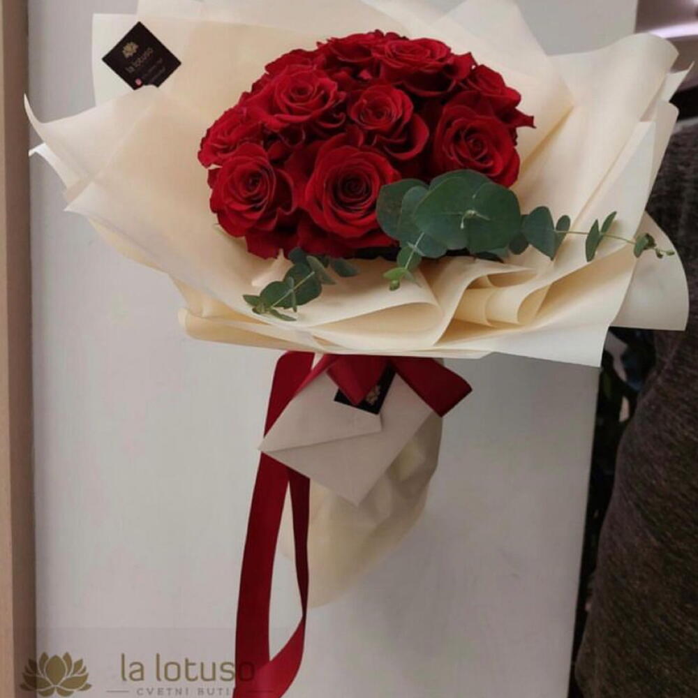 Red rose - 15 pcs Satin ribbon - 1 pcs decorative paper - 5 pcs