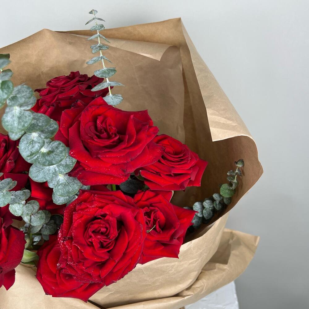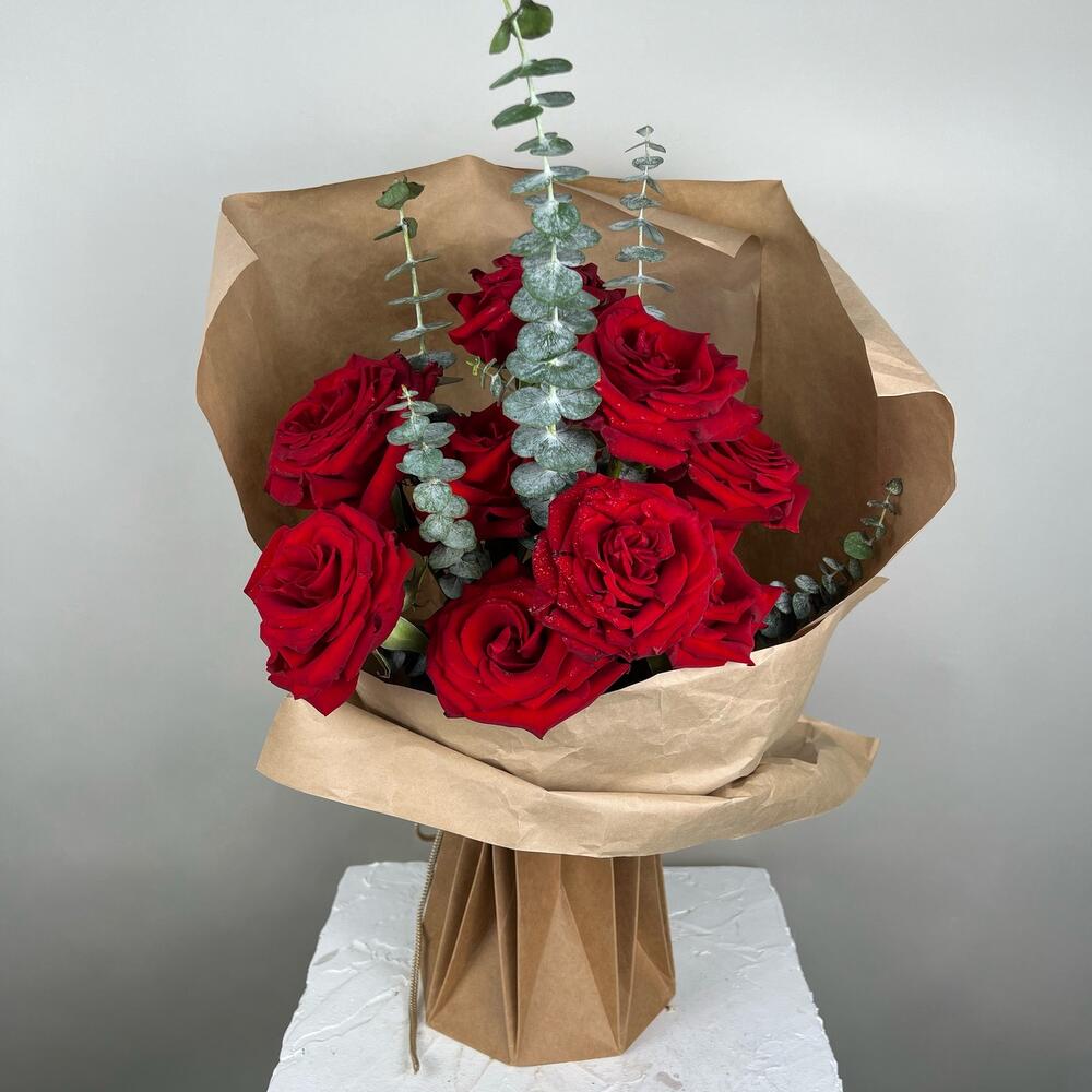 Eucalyptus - 3 pcs red roses - 12 pcs