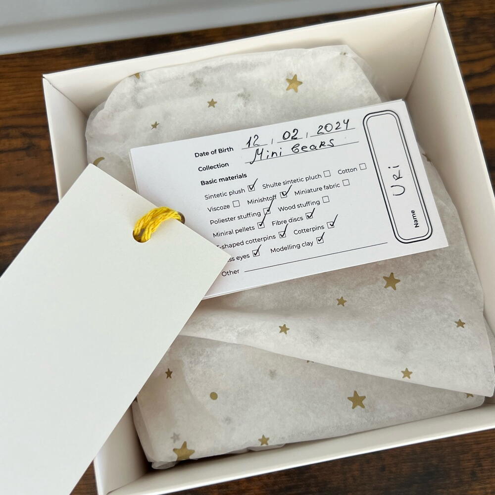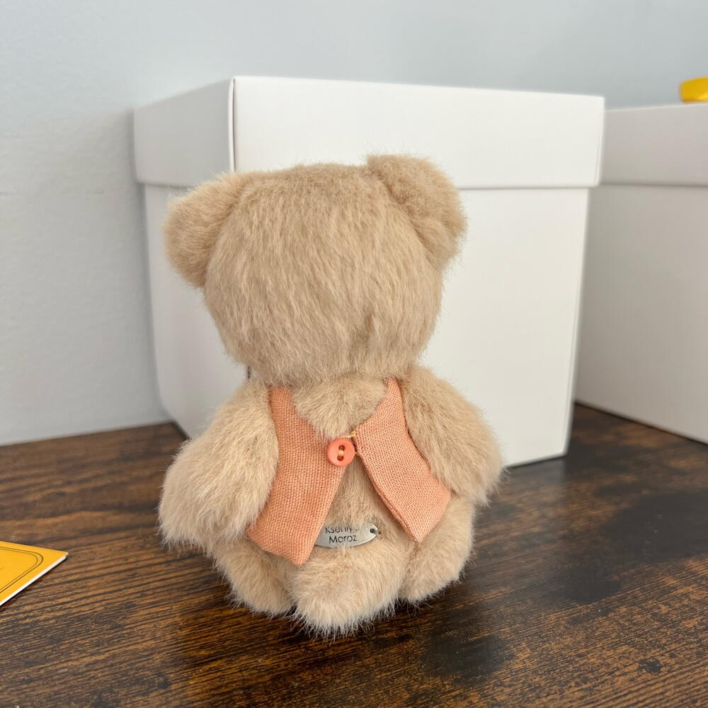 Handmade teddy from an award-winning teddy-toy artist based in Israel. Unique piece designed specially for Estee Flower. Teddy is made from high-quality materials and will last for many years. A cute handmade teddy bear; every detail is lovingly made by the artisan, which guarantees the highest quality. Each toy has its own passport and a unique design. Delivered in a gift box.