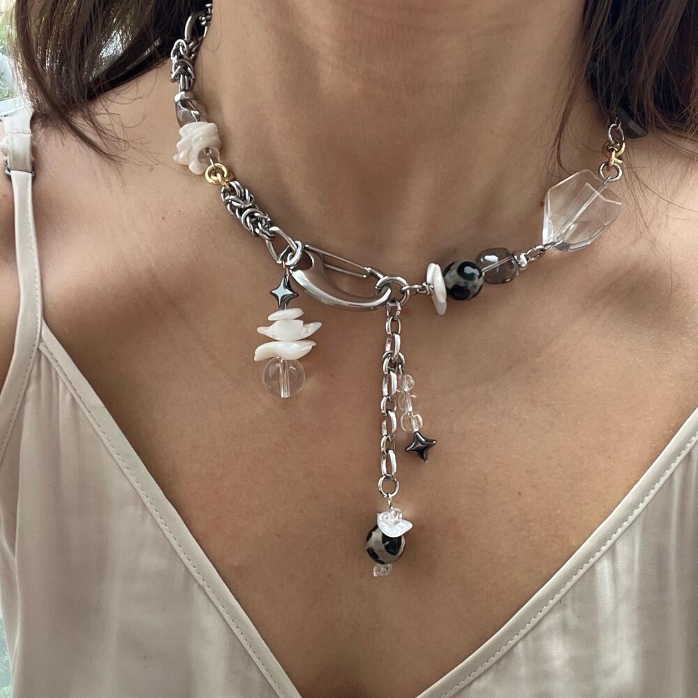 A handcrafted trendy necklace created from natural semi-precious stones and premium, corrosion-resistant alloy. Every detail is unique, embodying refined craftsmanship and timeless elegance.