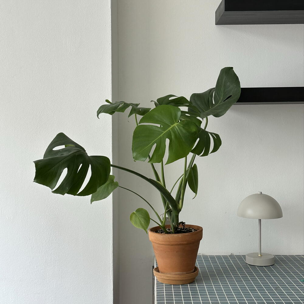 Monstera is the queen of urban jungles and a true icon of modern interiors. Its large, sculptural leaves bring a sense of calm and natural style to any space. Already repotted into a clay pot with perfect drainage and soil — no need to repot, just enjoy its green beauty right away!