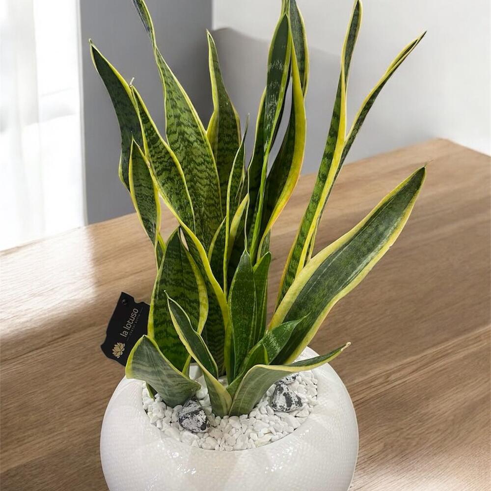 Sansevieria – in a Ceramic Planter Known for its air-purifying qualities and ability to thrive even in low-light spaces. It comes in a stylish ceramic pot – a perfect blend of health and design!