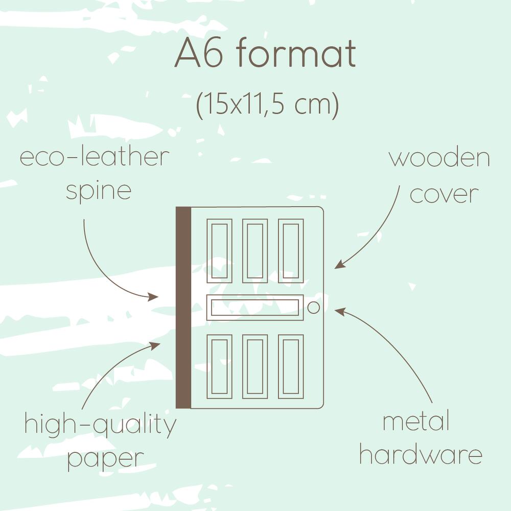This journal is based on a real Belgrade door, which you can find in the city (you can find the address on the back). A unique handmade notebook with a door-shaped cover is a great gift for an artist, someone who sketches, takes notes, keeps a diary or day planner, or any lover of unusual gifts. THE COVER OF THE JOURNAL We make covers from high-quality plywood, paint them by hand with acryl paints and then cover them with water-base varnish. That is why the texture of every journal cover is unique. The hardcover works as a hard surface to let you draw or make notes anywhere you get inspired. The plywood cover protects paper as well. ECO-LEATHER BINDING For binding we use high-quality eco-leather. It is wear proof and pleasant to touch. PAPER We use fine designer eco paper Flora Anice that is 30% recycled and contains plant inclusions, so each page looks unique and textured. Еhe color of the paper is soft cream. It is suitable for pencils, pens and liner. The pages are padded, so it is easy to unfold the journal flat and write and draw in it. The journal has 64 sheets (128 pages). HARDWARE We use metal hardware to make our journals look prettier and smarter. If you have questions left or you want to customize your purchase, feel free to contact me and I will try to make your dream journal :)