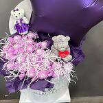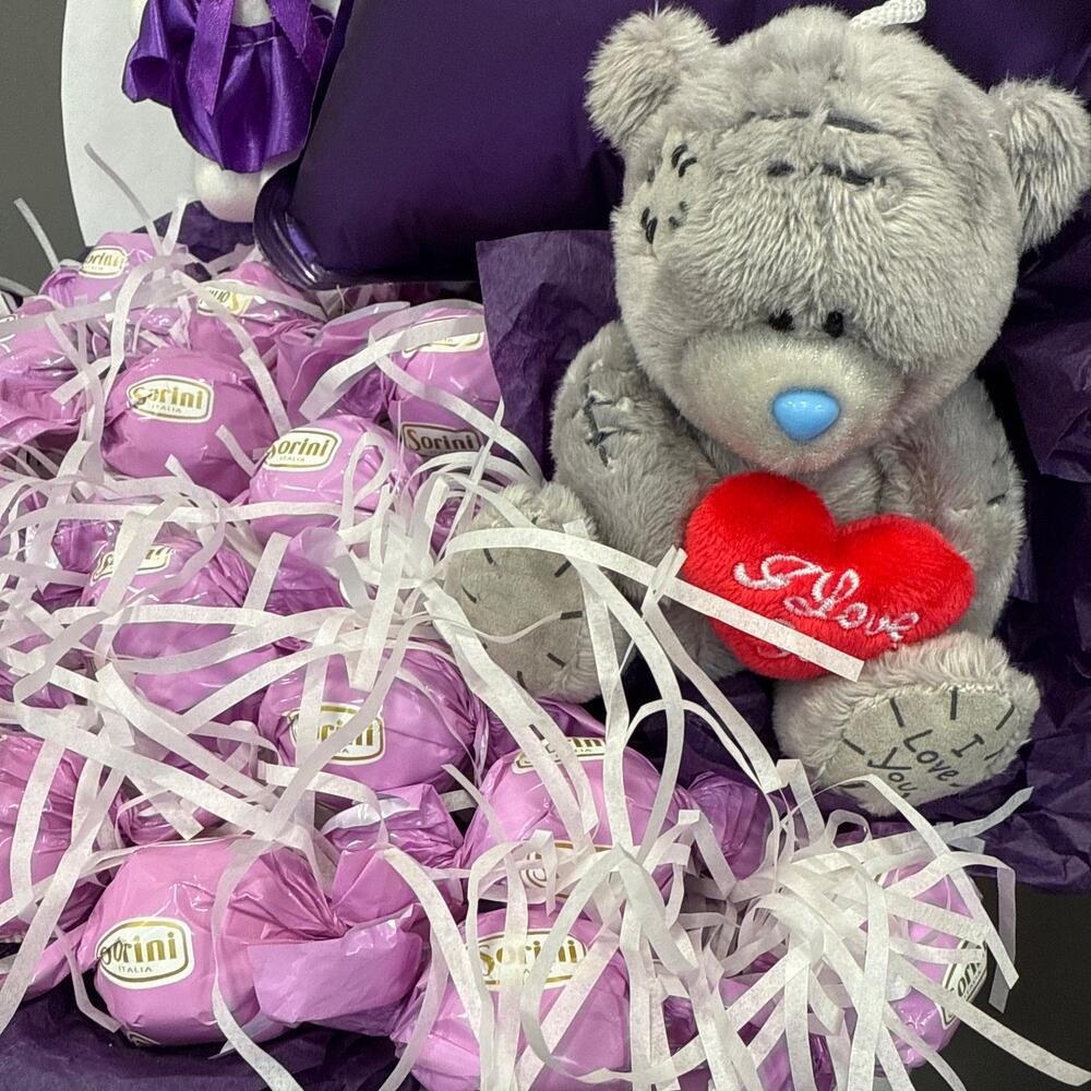 Композиция с мягкой игрушкой, шарами и сладостями