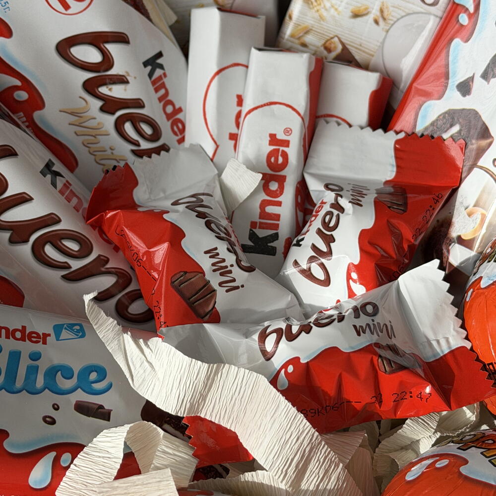 Kinder bueno - 2 pcs Kinder сюрприз - 3 pcs Kinder delice - 1 pcs kinder bueno mini - 4 pcs kinder палочки - 3 pcs kinder country - 2 pcs