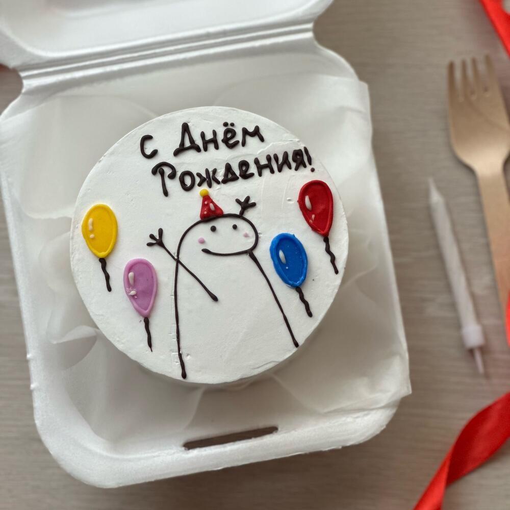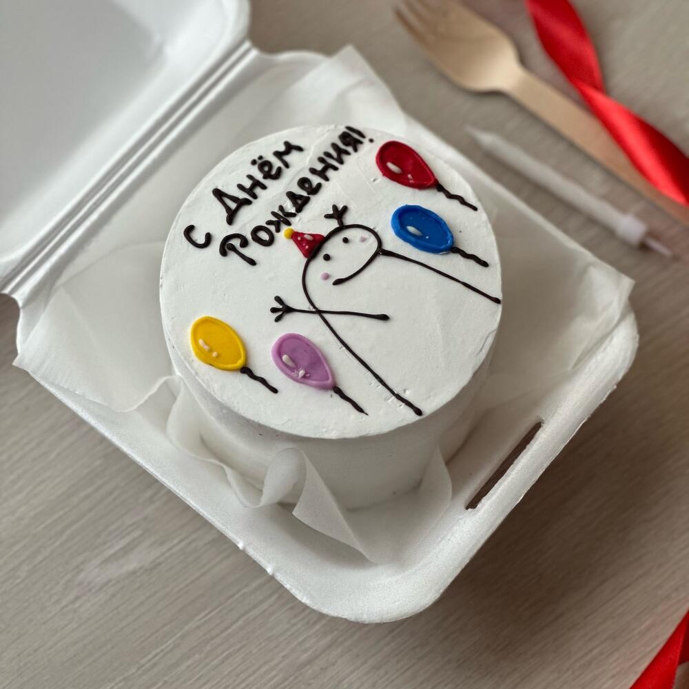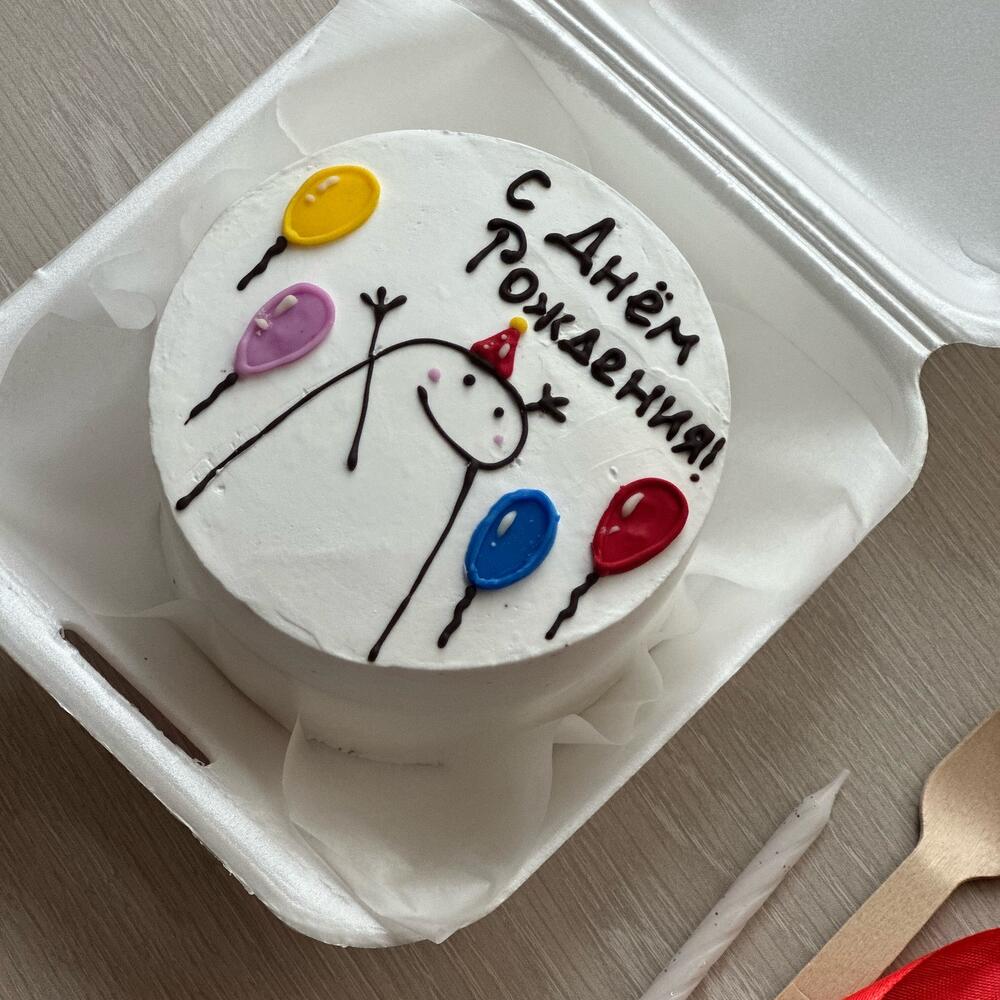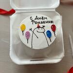 Тортик поставляется с вилочкой и свечкой, упаковывается ленточкой и в крафт пакет. Два варианта исполнения: 1. ванильный бисквит, ванильный крем. 2. шоколадный бисквит и шоколадный крем При желании возможно добавление ягод и орехов По умолчанию поставляется первый вариант. Указать об изменениях в комментарии к заказу, либо личным сообщением после оформления. Дизайн также можно обговорить после оформления заказа. Исполним ваши пожелания. Оформление торта с вашим дизайном с надписью и простым рисунком - бесплатно Оформление с напечатанной картинкой на вафельной бумаге +500 драм к стоимости торта. Оформление бенто со сгорающим слоем +1000 драм к стоимости торта. Счет к доплате выставляется после уведомления о желании такого оформления. Если вдруг Вам нужен торт раньше доступного указанного срока, напишите сообщение ДО оформления заказа через графу «написать». При возможности постараемся организовать его раньше.