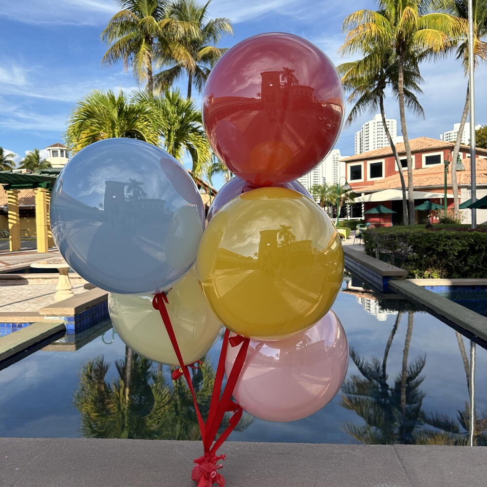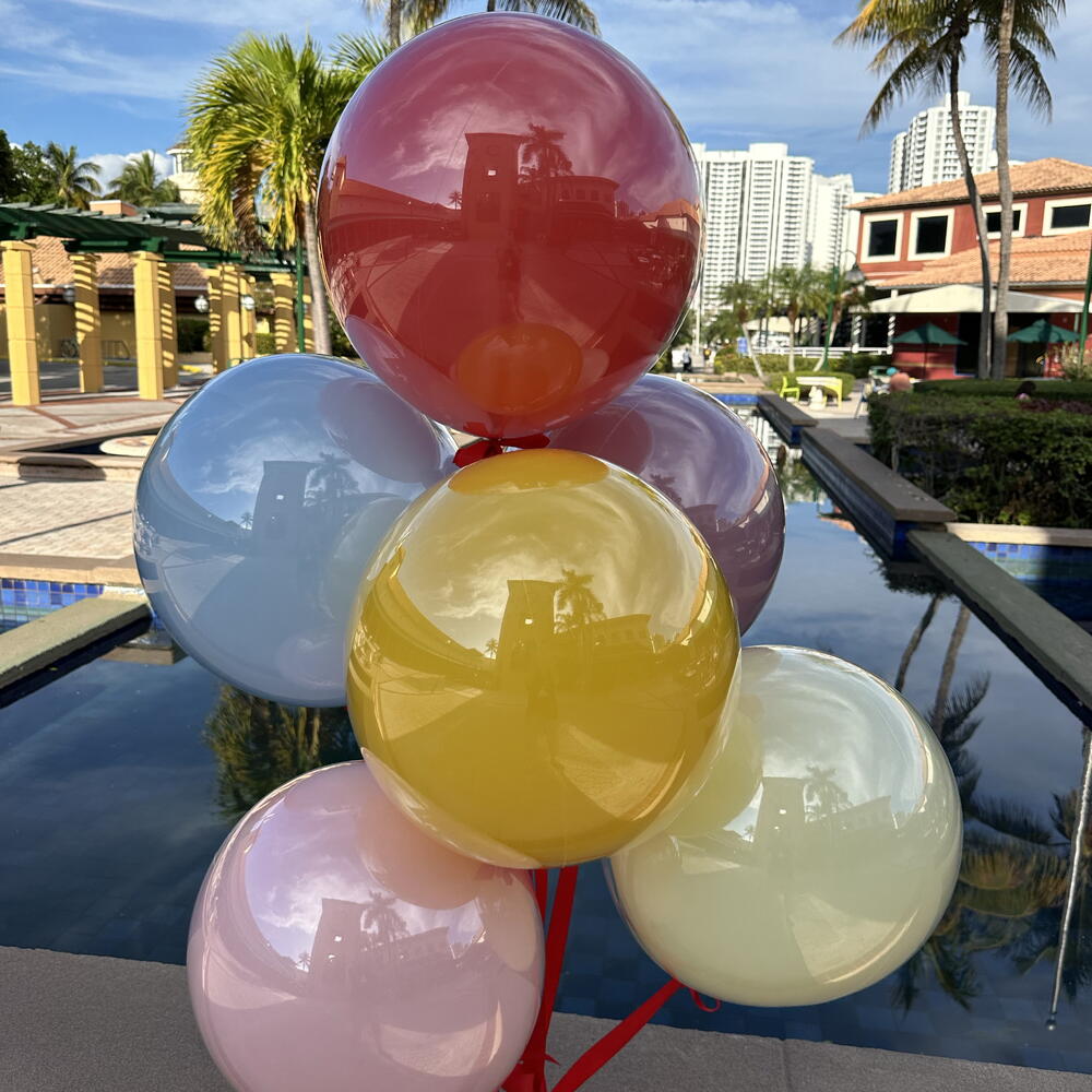 6 globos de cristal de 24 pulgadas cada uno, con cintas y un peso. Los colores se pueden cambiar