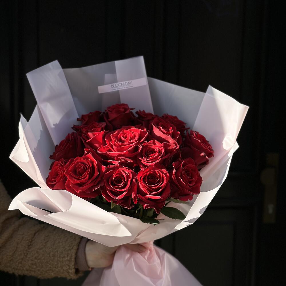 Ramo de rosas rojas medianas - (50-60cm) Pide un ramo elegante de rosas rojas. El ramo incluye rosas de la más alta calidad importadas de Colombia/Ecuador
