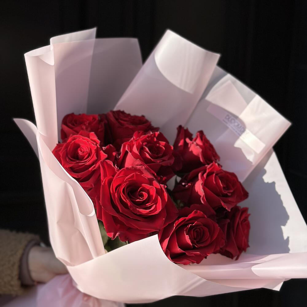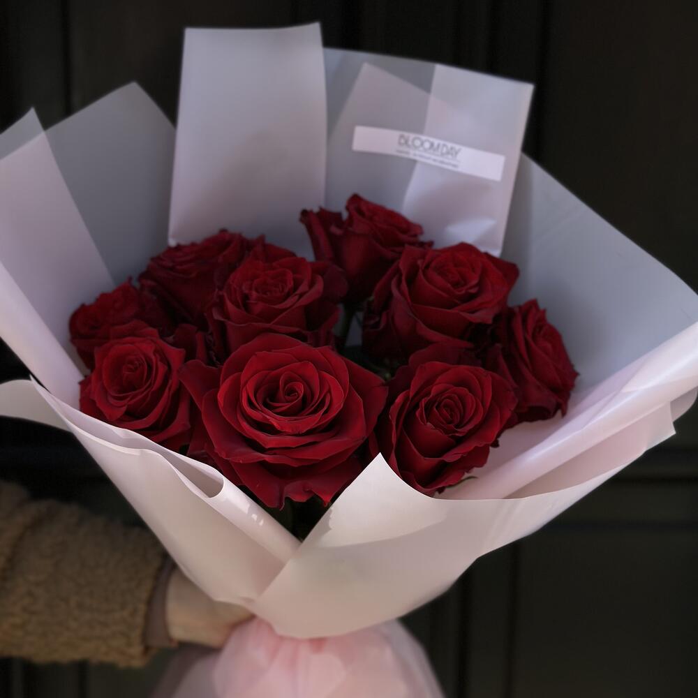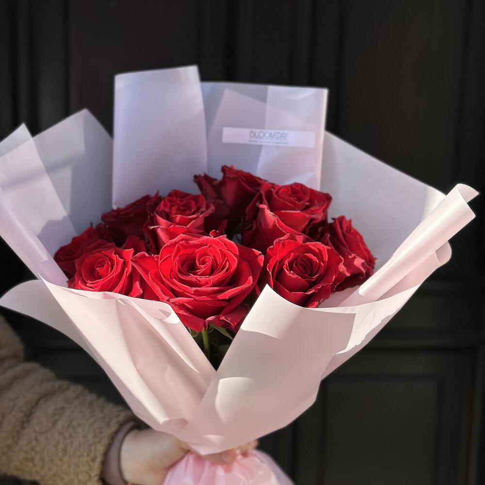 Ramo de 9 rosas rojas medianas - (50-60cm) Pide un elegante ramo de rosas rojas. El ramo incluye rosas de la más alta calidad importadas de Colombia/Ecuador