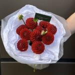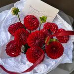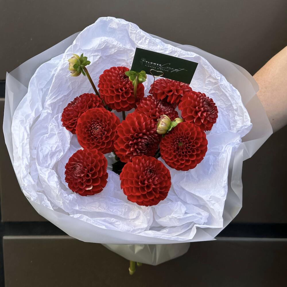 Роскошный и выразительный букет, который сразу приковывает взгляд. Георгины глубокого бордового оттенка символизируют страсть, уважение и внутреннюю силу. Их крупные, бархатистые соцветия создают впечатление благородной пышности и утончённой красоты. Такой букет станет ярким акцентом на торжестве, изысканным подарком для особого человека или украшением интерьера, наполняя пространство атмосферой элегантности и гармонии.