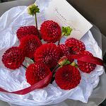 Embalaje - 3 ud. Tarjeta postal - 1 ud. Cinta de raso - 1 ud. бордовые георгины - 9 ud.