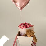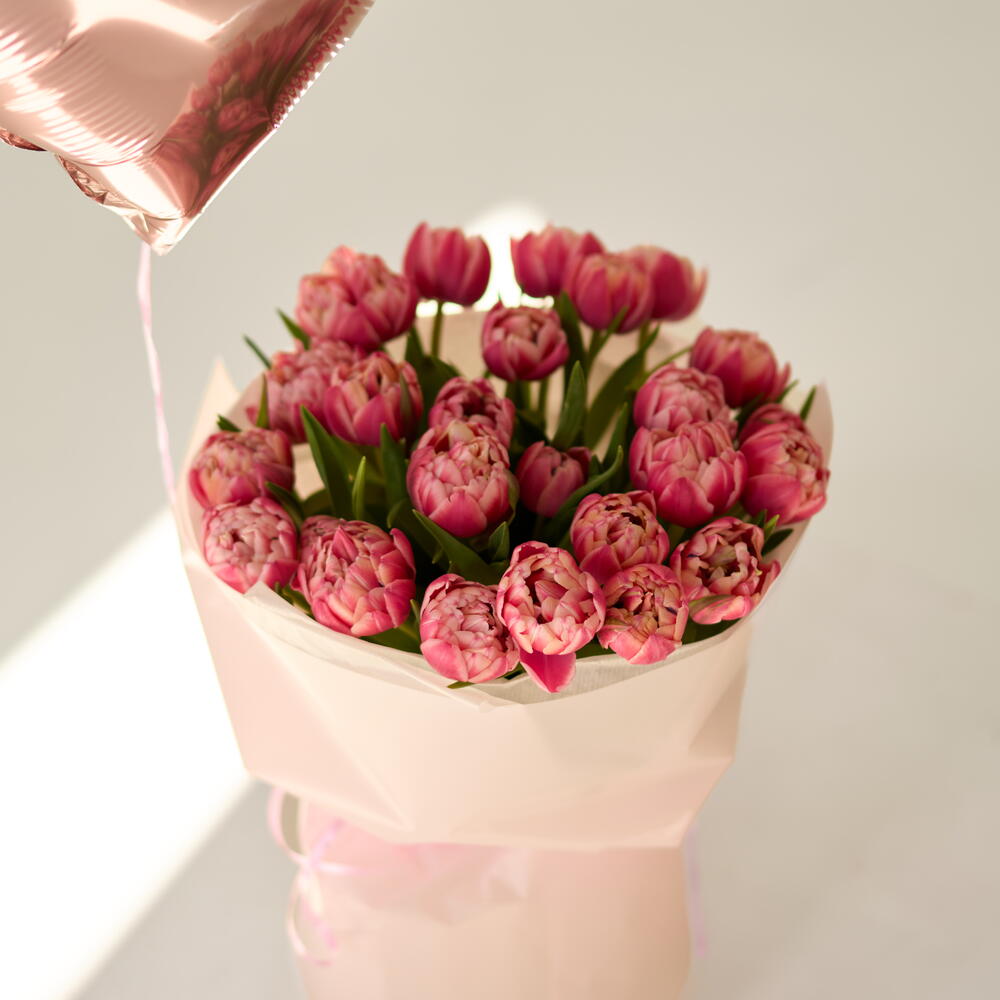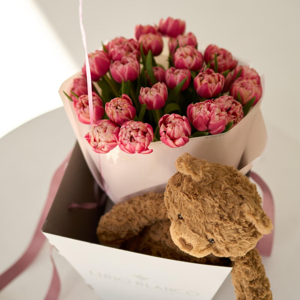 oso de peluche suave - 1 ud. pink heart-shaped balloon - 1 ud. bright pink tulips - 25 ud.