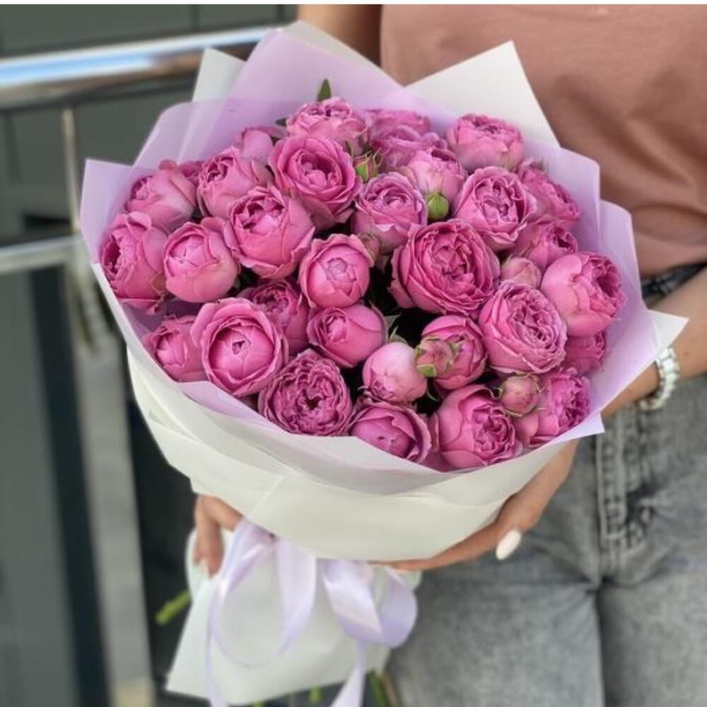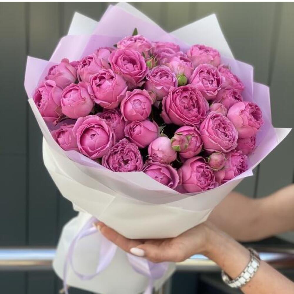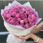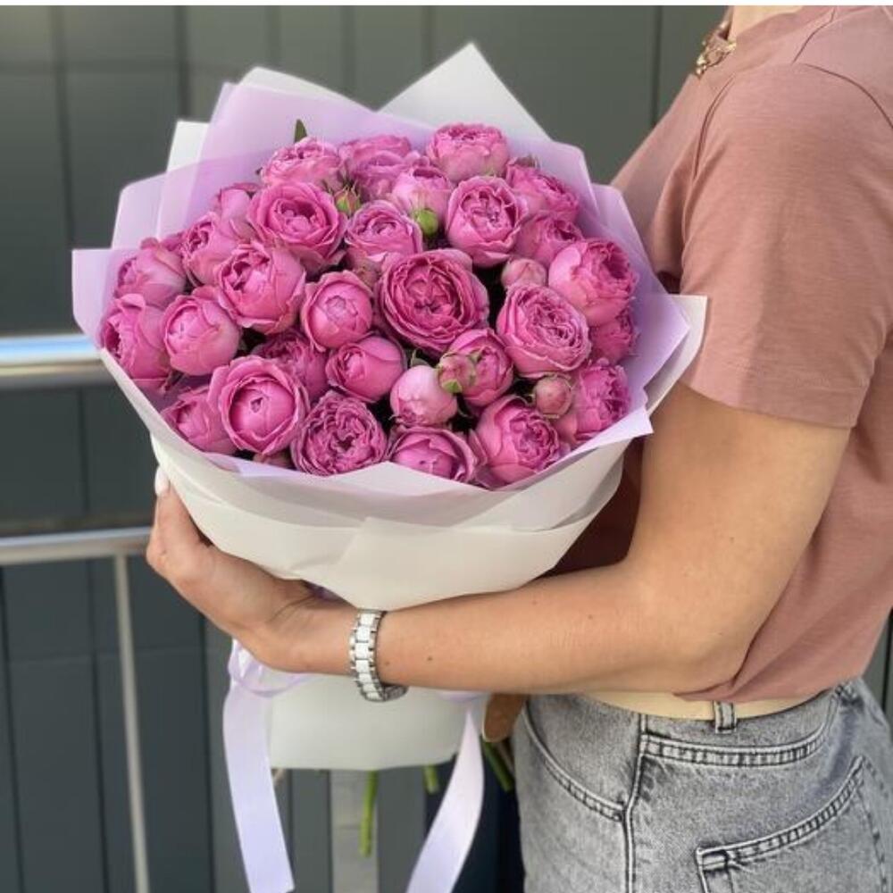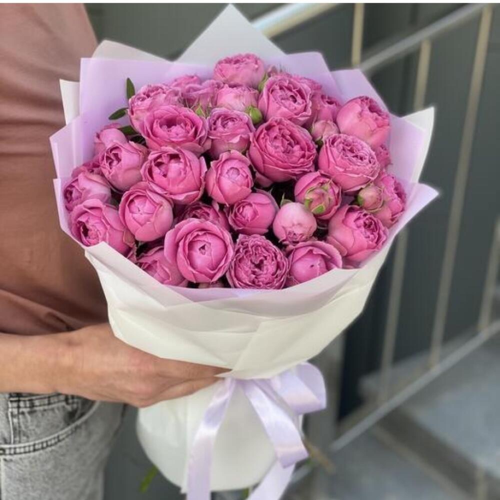 Подарите своим близким нежность и красоту с этим изысканным букетом из розовых пионовидных роз. Великолепные, пышные цветы создают ощущение радости и праздника. Букет завернут в стильную белую бумагу и перевязан атласной лентой, что придаёт ему особый шарм. Идеальный выбор для особых случаев, будь то день рождения, юбилей или просто знак внимания. Позвольте этому букету выразить ваши самые тёплые чувства!
