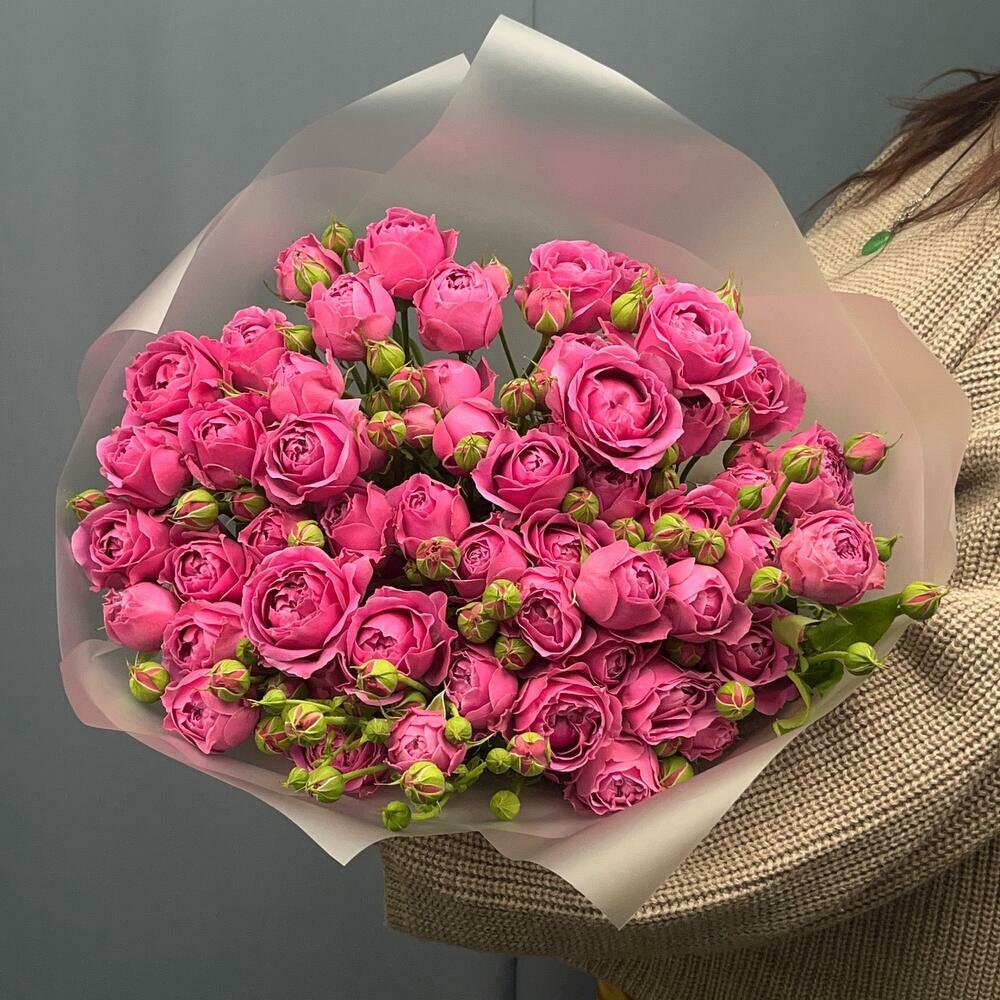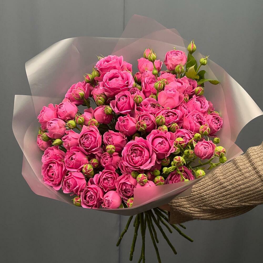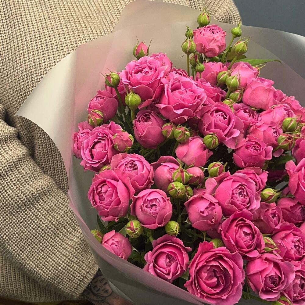 Букет от компании «Flower Lab»из розовых пионовидных кустовых роз сорта Misty Bubbles - это идеальный выбор для тех, кто хочет выразить искренние чувства. Монобукет из ярко-розовых роз может быть символом молодости и свежести, любви или дружеского расположения, а также приятным проявлением уважения.