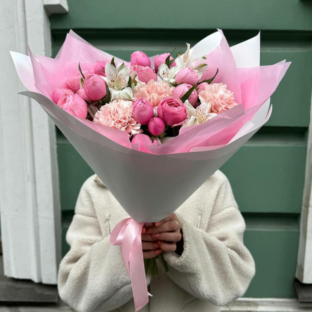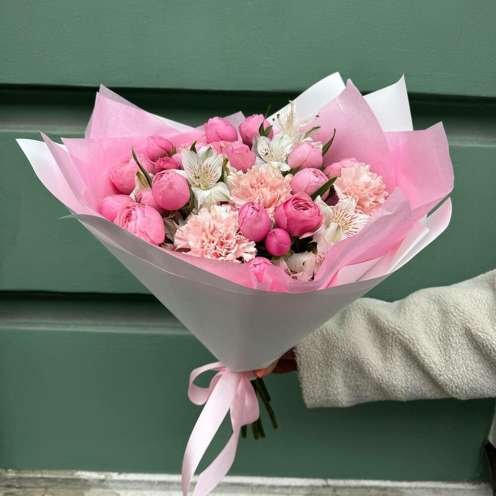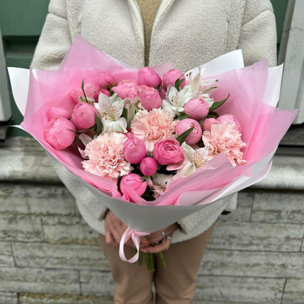 Букет пион роза, альстромерия, диантус