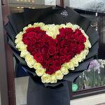 Ramo en forma de corazón de 63 rosas blancas y rojas, productor Holanda, calidad premium, longitud 55-60 cm