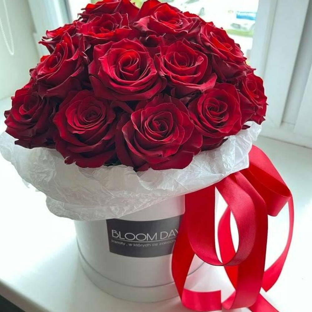 Flower box z czerwonymi rozami
