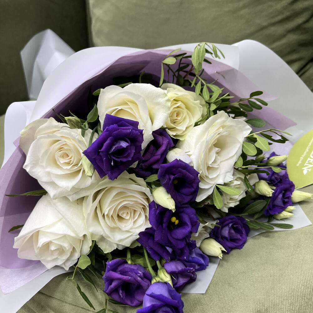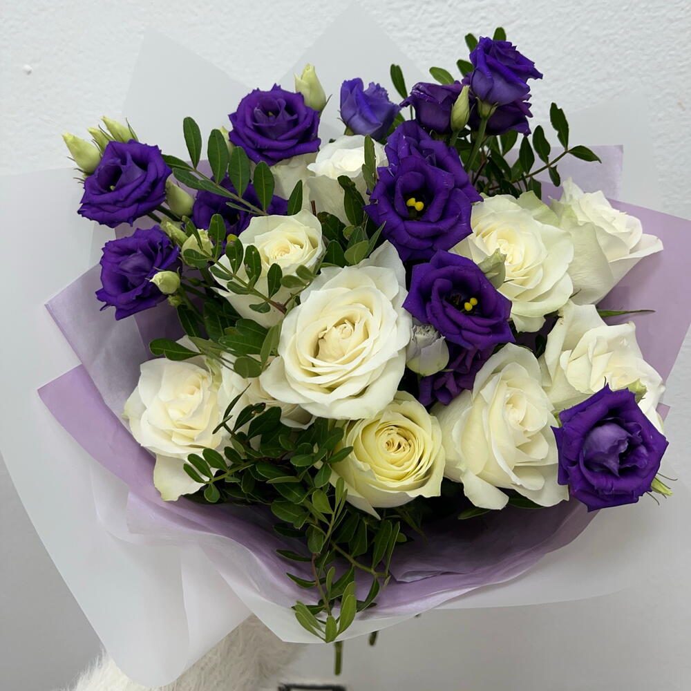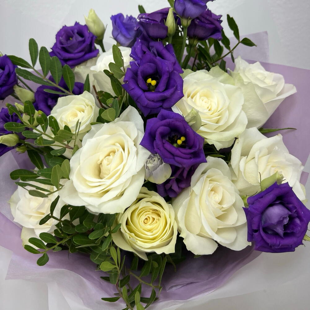 rose white - 9 ud. lisianthus púrpura - 4 ud.