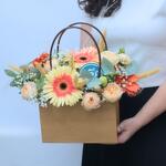 Гипсофила - 5 ud. El eucalipto - 5 ud. flores secas lagurus - 5 ud. gerbera - 4 ud. rosas en forma de peonía - 5 ud.
