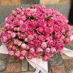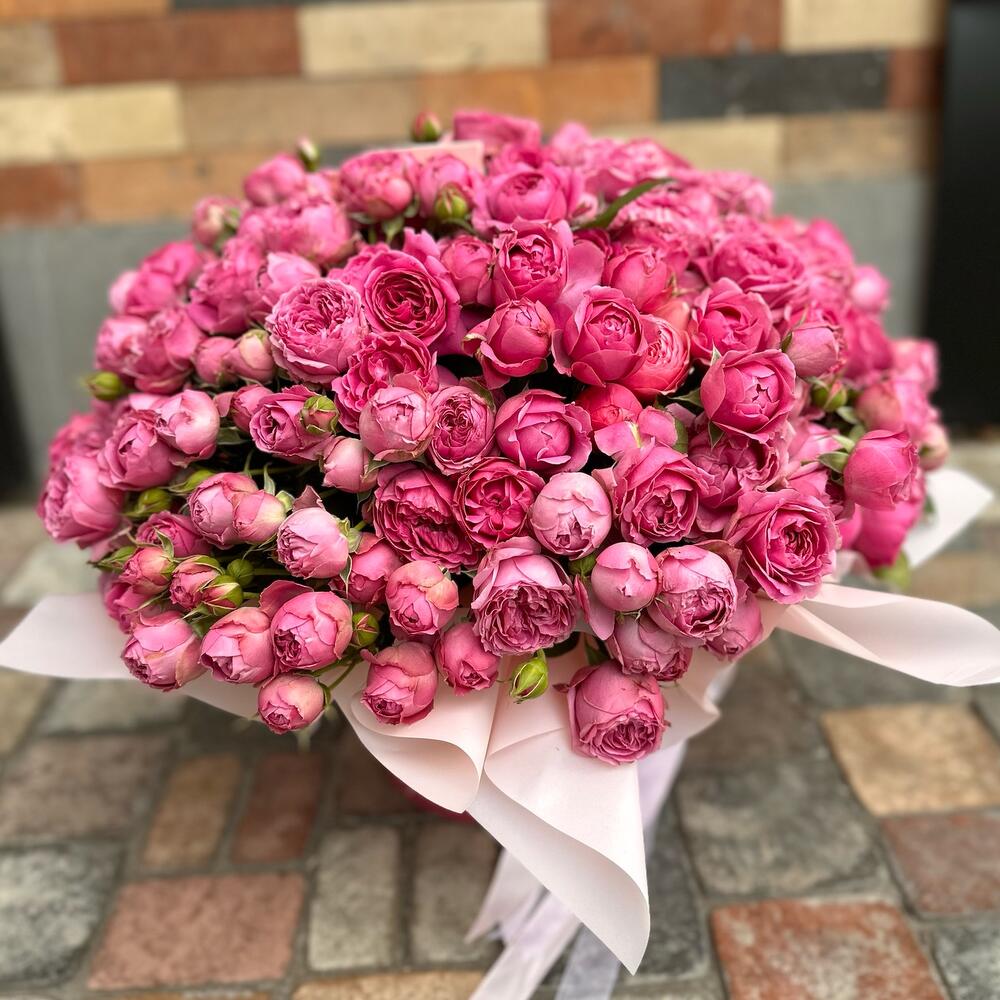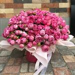 Конечно! Этот роскошный букет пионовидных роз в коробке — настоящее произведение искусства. 🌸 🌹 Пионовидные розы: Эти розы, напоминающие пионы, создают впечатление изобилия и роскоши. Они обладают многолепестковыми цветками, которые никогда не раскрываются до конца, как у английских роз. В этом букете они представлены в разных оттенках розового, создавая градиент от центра к краям. 🌿 Зелень: Зеленые листья добавляют свежести и контраста. Они подчеркивают красоту роз и придают букету естественный вид. 🎀 Упаковка: Букет уложен в круглую коробку и украшен нежной розовой лентой. Это придает ему изысканный вид и говорит о тщательном выборе. 💐 Этот букет — идеальный способ выразить свои чувства. Не упустите шанс приобрести его на Flowwow! 🌼