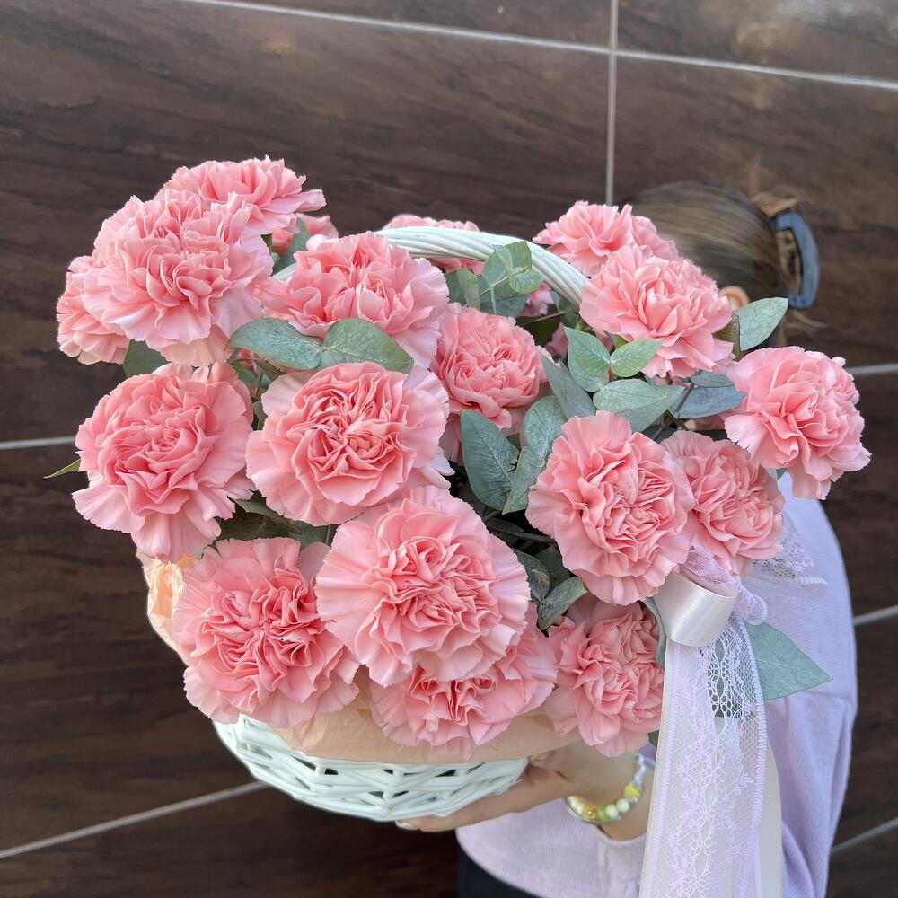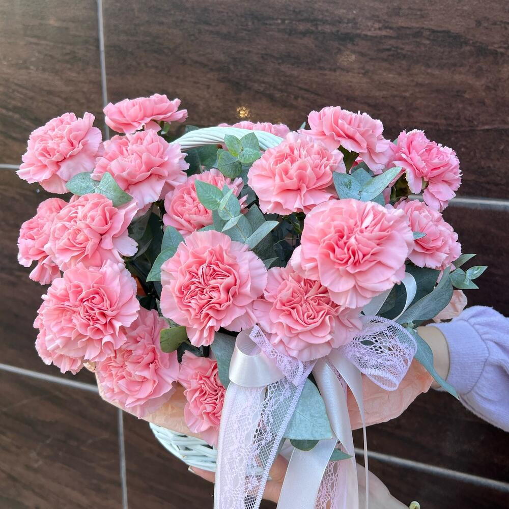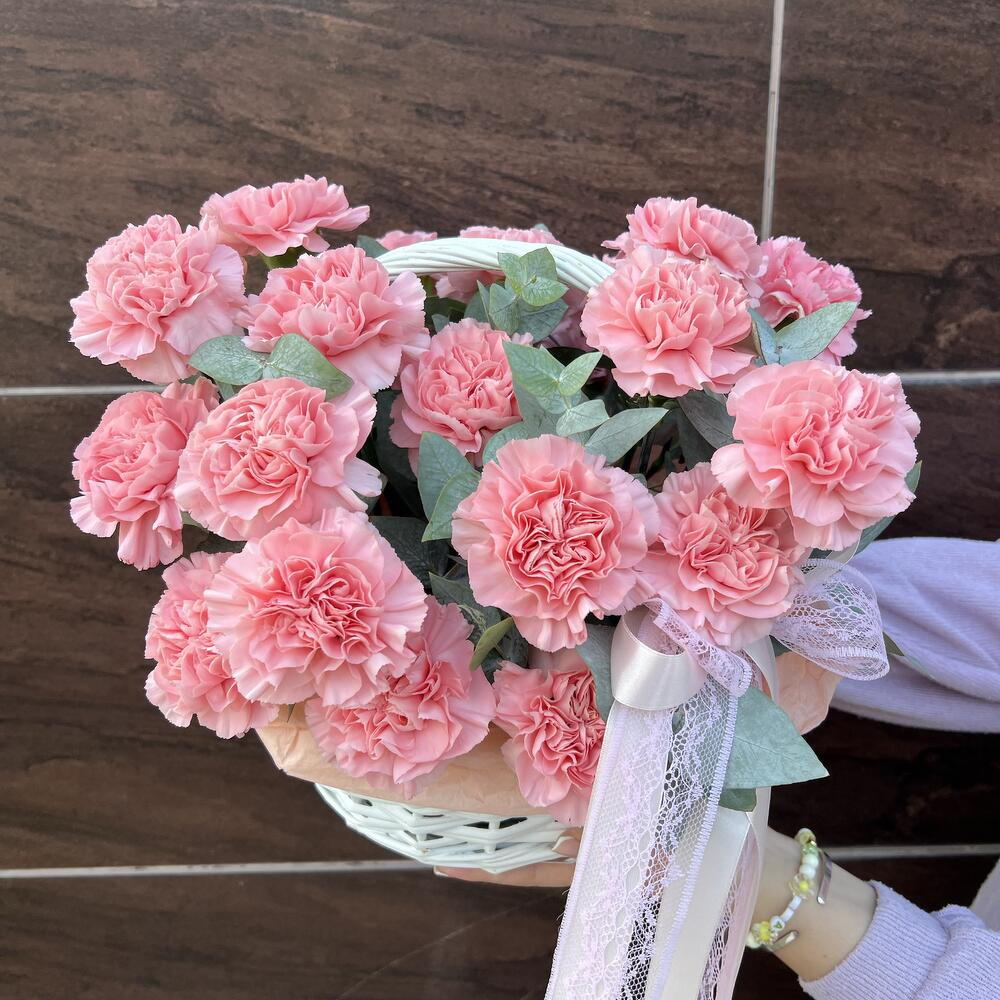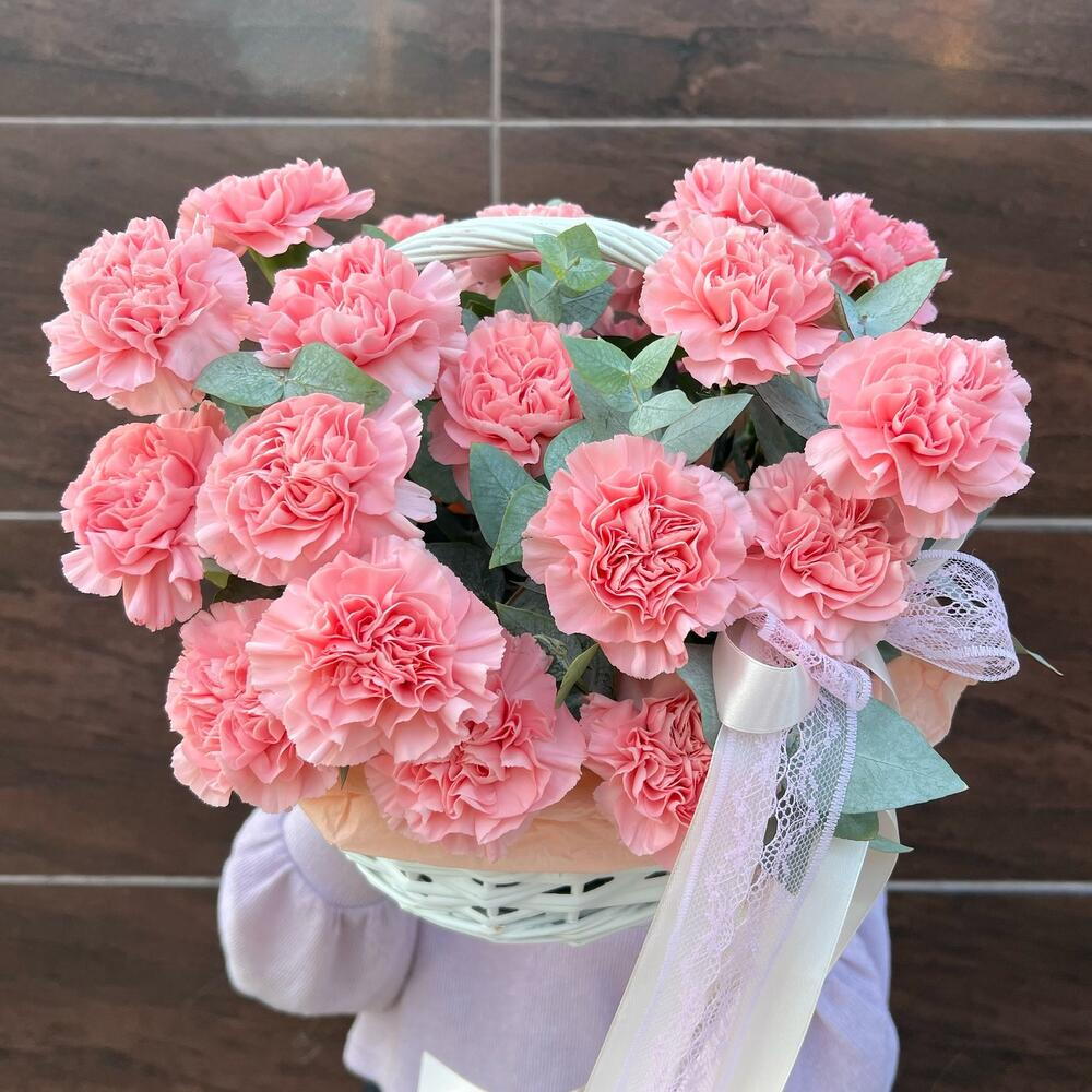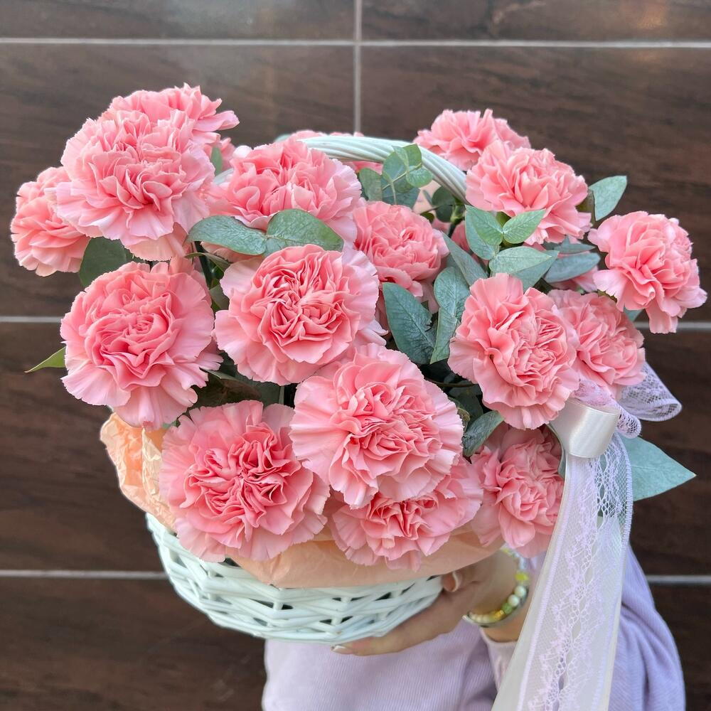 Корзина с диантусами и эвкалиптом 💚🩷 Отличный подарок на любой повод, либо вовсе без повод Букет можно подарить как любимой женщине, так и коллеге!