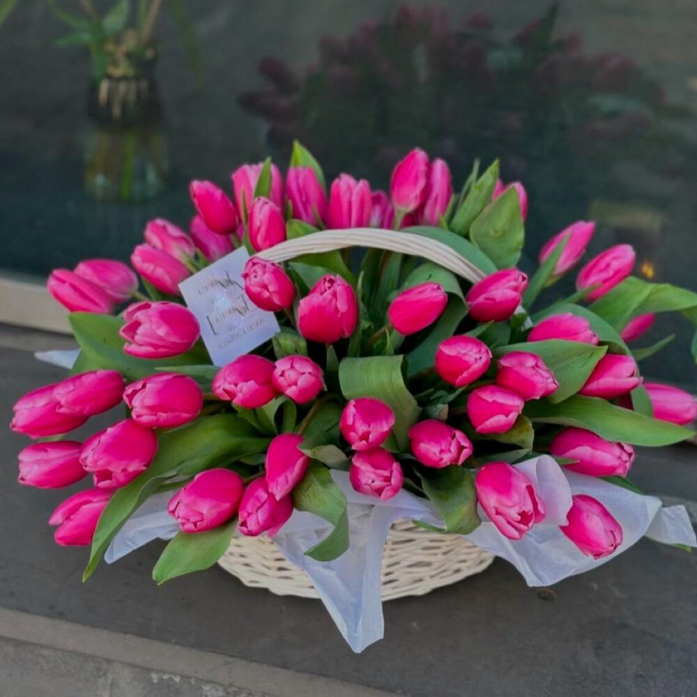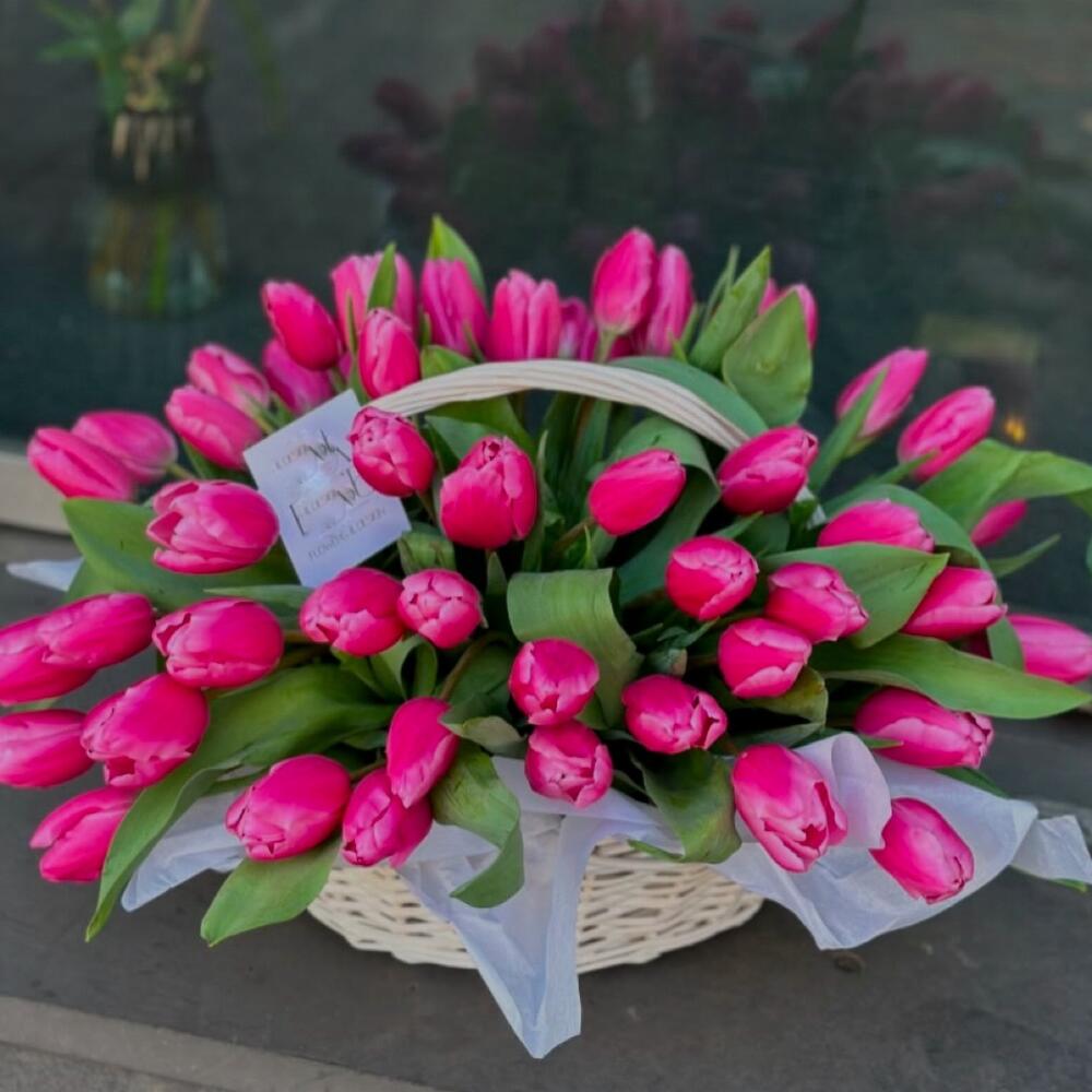 Корзина с 55сиреневыми тюльпанами – утонченность и стиль в каждой детали. 🌷💜 Эта цветочная композиция идеально подойдет для особенного события, дня рождения, юбилея, 8 марта или просто, чтобы порадовать близкого человека. Сиреневые тюльпаны символизируют восхищение, элегантность и нежность, а их воздушные лепестки создают эффект легкости и романтики. 💜 Состав: • 50 свежих сиреневых тюльпанов • Элегантная корзина • Декоративное оформление 📍 Доставка по городу – порадуйте любимых красивым и стильным подарком! : корзина с тюльпанами, сиреневые тюльпаны, букет в корзине, цветы в корзине, весенний букет, свежие тюльпаны, доставка цветов