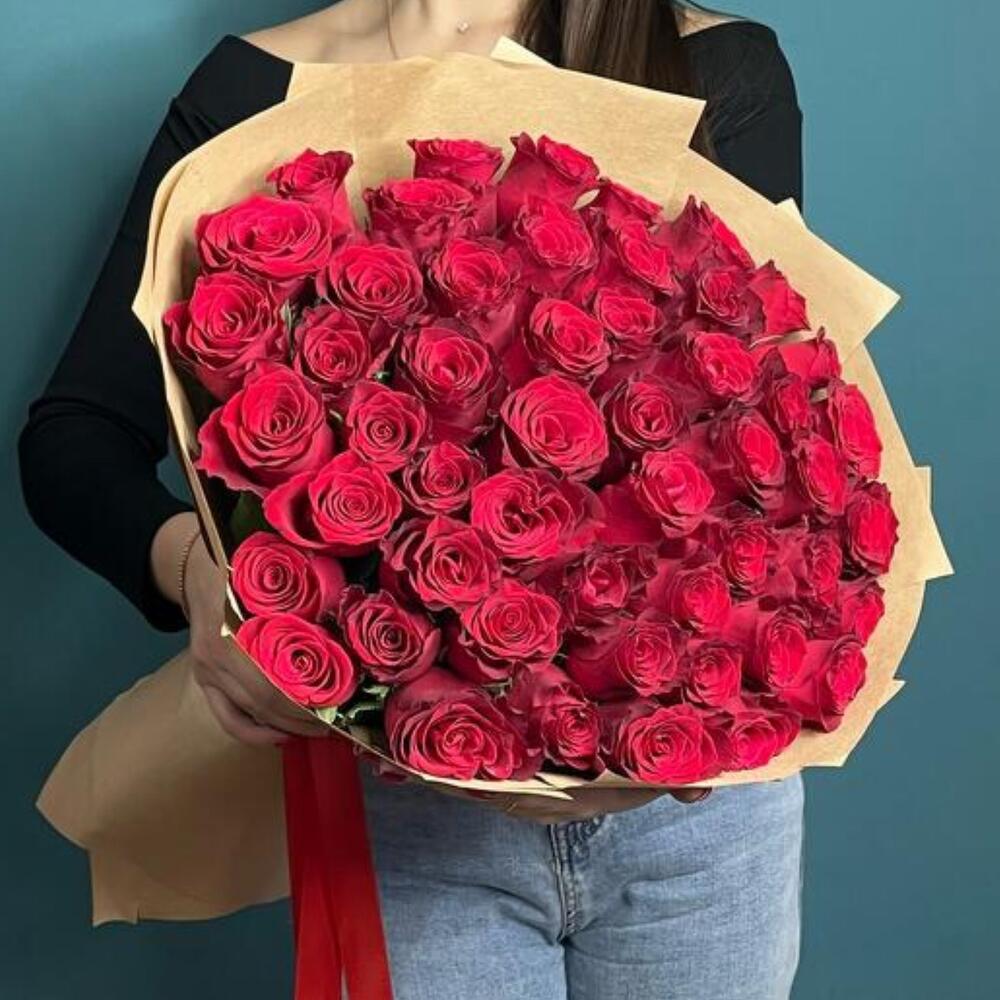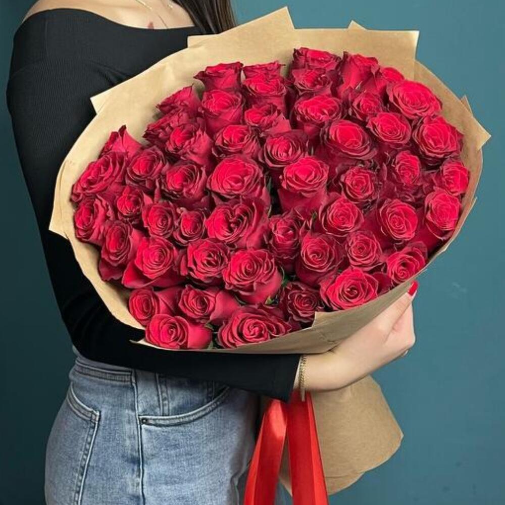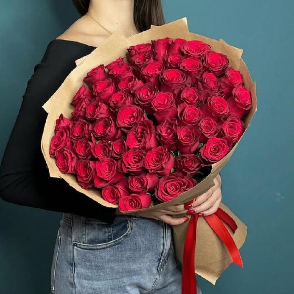 Cinta de raso - 1 ud. Kraft embalaje - 4 ud. rosas rojas - 51 ud.