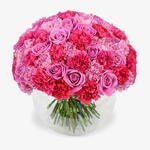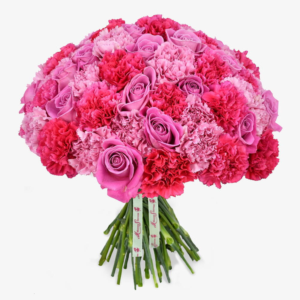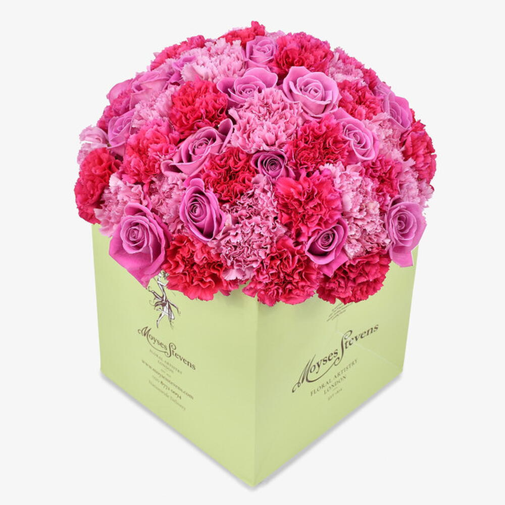 Extravagant and bold, the Pink Panther bouquet is one of our signature bouquets. Typical of a Moyses Stevens design it is effortlessly easy on the eye, with only the finest blooms used in its creation. Featuring our famous pink roses and two shades of carnation, its a timeless evocation of love and the romantic spirit.