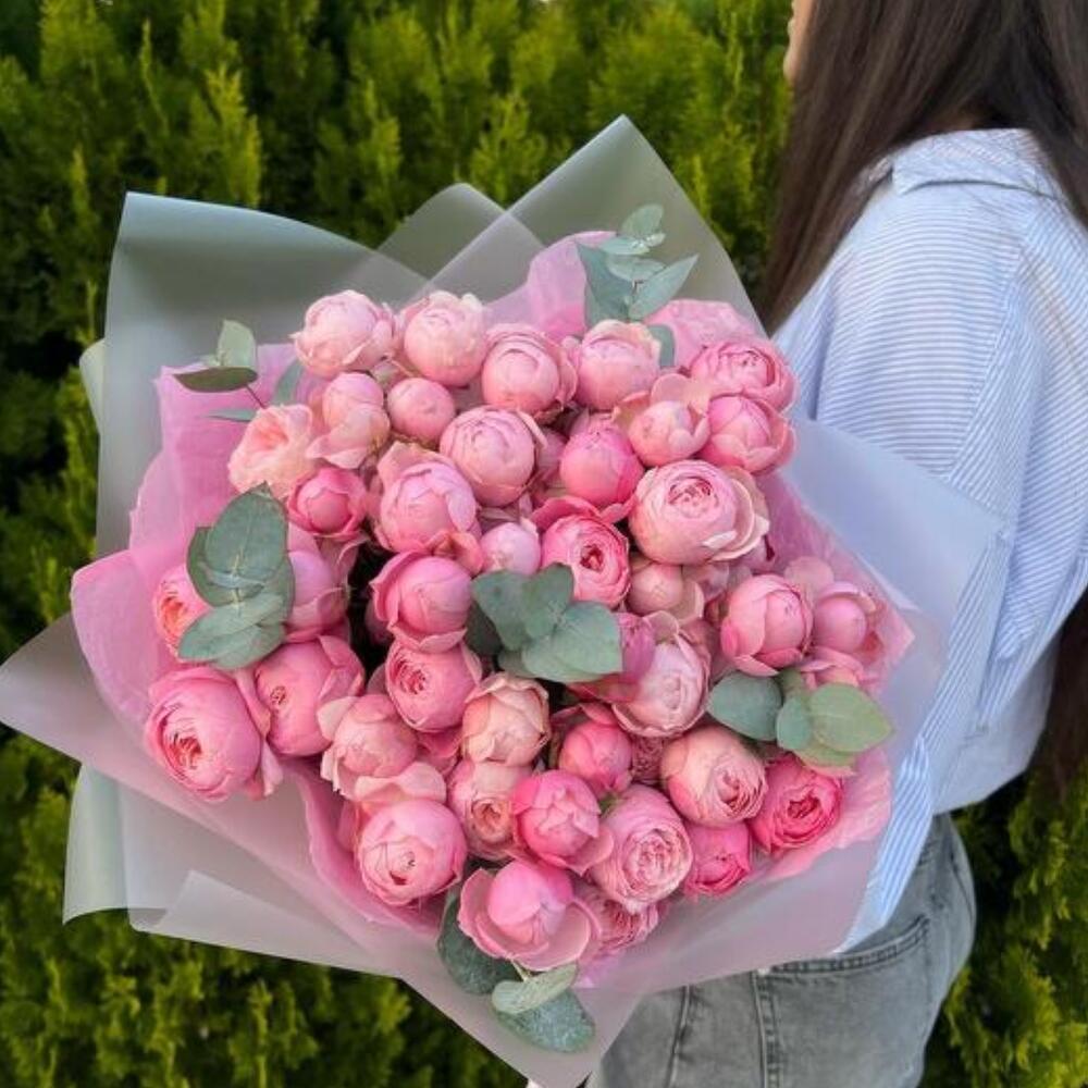 Очаровательный букет из пионовидных роз в нежных оттенках розового — идеальный подарок для особого случая. Каждое соцветие раскрывается, словно маленький пион, даря тепло и заботу. Дополнен эвкалиптом и стильной упаковкой. Подходит для признания в любви, дня рождения или просто для того, чтобы порадовать близкого человека. 🌸 Свежие цветы 🚚 Быстрая доставка по Еревану 🎀 Упаковка в подарок