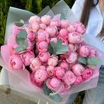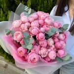 El eucalipto - 5 ud. Cinta de raso - 1 ud. Кустовая пионовидная rosa - 11 ud. Embalaje de diseño - 6 ud.