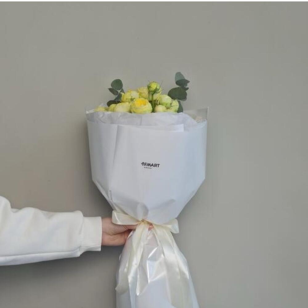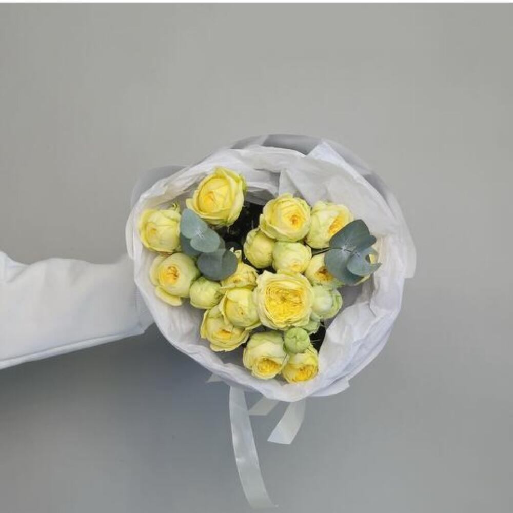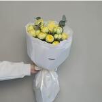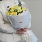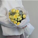 Небольшой букет красивых пионовидных желтых роз, оформленных в воздушную упаковку. Отличный подарок в знак внимания для любимой, подруги, коллеге, сестре, маме, бабушке