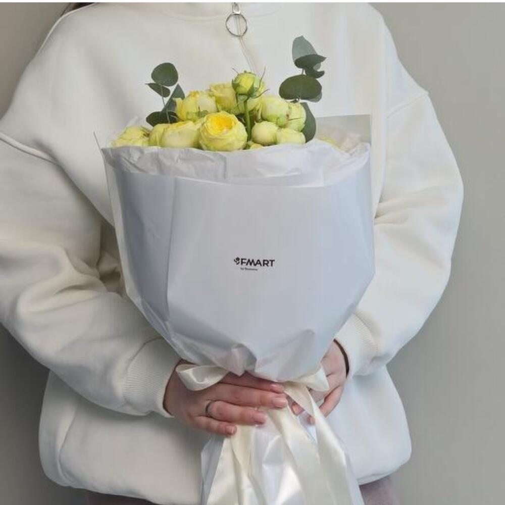 Пионовидные желтые розы с эвкалиптом 5веток