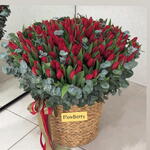 Премиум Корзина из красных тюльпанов с эвкалиптом