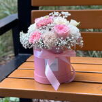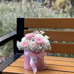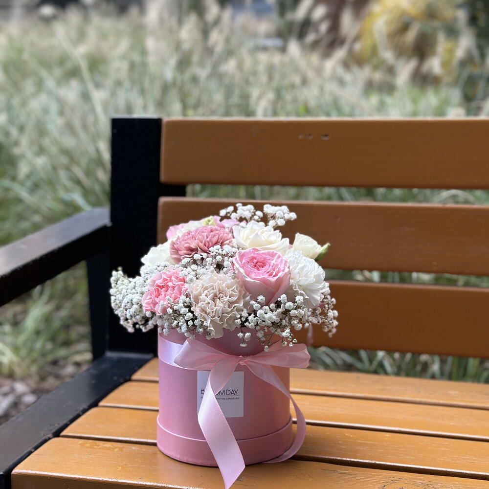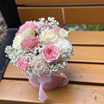 flower box - 1 ud. dianthus - 7 ud. gipsofila - 3 ud. accesorios florales - 3 ud. rosa clara - 5 ud.
