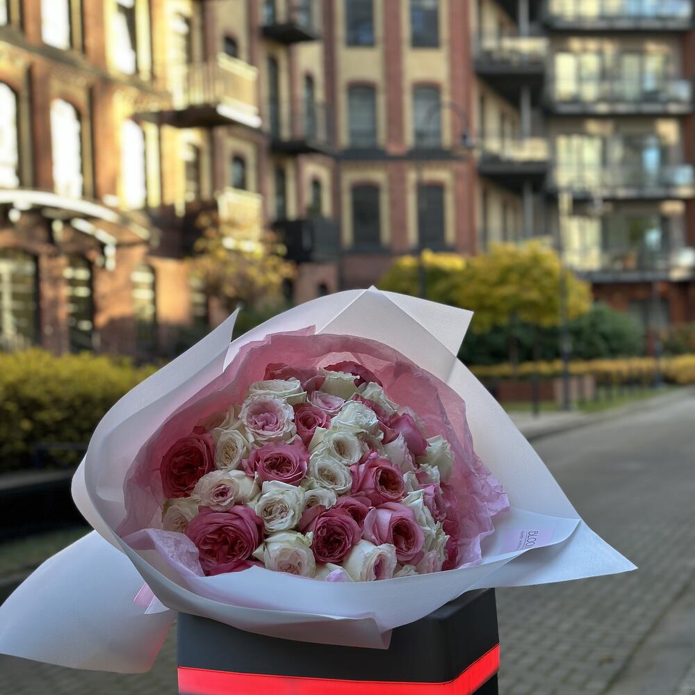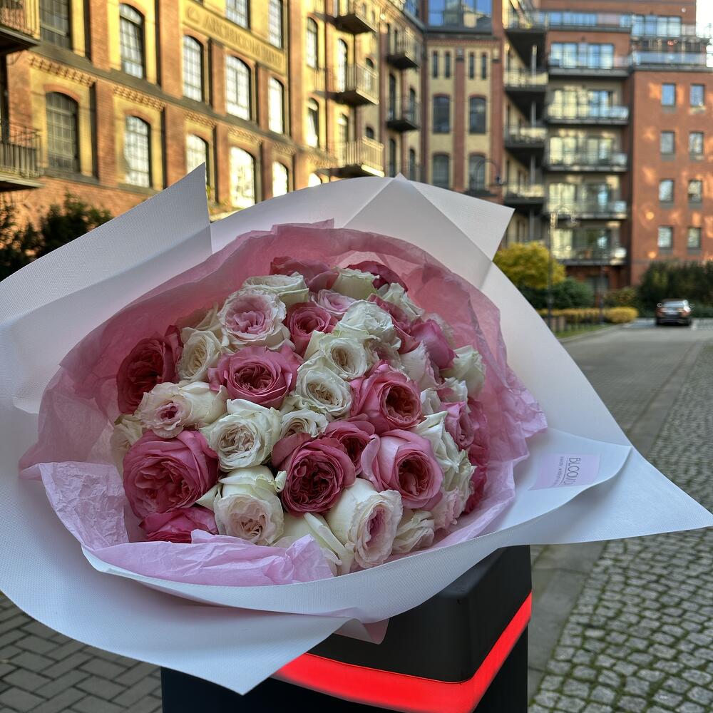 Bukiet wykonany z mixu pięknych róż w pastelowych odcieniach, w delikatnym mlecznym opakowaniu. Gatunki róż mogą być inne , w zależności od dostępności . Zapewniamy róże najwyższej jakości
