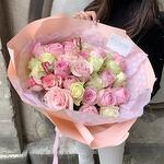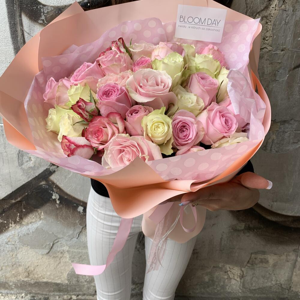 Bukiet skała się z 25 róż z różowych i jasnych kolorach. *W przypadku braku jakichkolwiek składników bukietu kwiaciarnia zastrzega sobie prawo do wymiany brakujących kwiatów na najbardziej zbliżone pod względem wyglądu, koloru i ceny. Kwiaty są żywym materiałem, charakterystyczna jest dla nich sezonowość. Nasze kwiaciarnie z pewnością zachowają kolorystykę, wielkość bukietu i oddają jego nastrój.