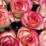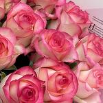 Букет роз Джумилия со светлыми лепестками по краям окрашена в яркий розовый цвет. Не оставит равнодушным самого искушённого получателя. По вашему желанию приложим открытку с текстом.