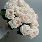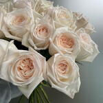 Bukiet z wyjątkowych i niezwykle popularnych róż White O’Hara – jednych z najbardziej cenionych odmian na świecie. To kwiaty o dużych, romantycznych główkach, znane przede wszystkim ze swojego niepowtarzalnego, intensywnego zapachu. Ich delikatna, kremowo-biała barwa z lekkim różowym tonem dodaje bukietowi miękkości, elegancji i ponadczasowego uroku. Odmiana White O’Hara jest dostępna również w wersji różowej, a obie zachwycają tak samo pięknym aromatem i pełnym, luksusowym wyglądem. W sytuacji, gdy ta konkretna odmiana nie jest dostępna, zapewniamy zamianę na wysokiej jakości róże w odcieniach białych, kremowych lub pudrowo-różowych, utrzymując ten sam styl i romantyczny charakter kompozycji. To idealny wybór dla osób, które szukają bukietu subtelnego, pachnącego i wyjątkowo eleganckiego.