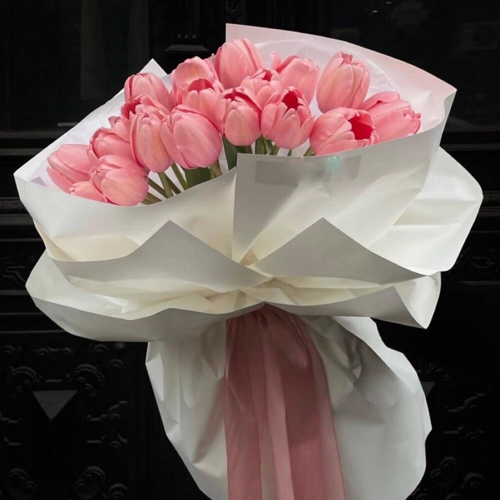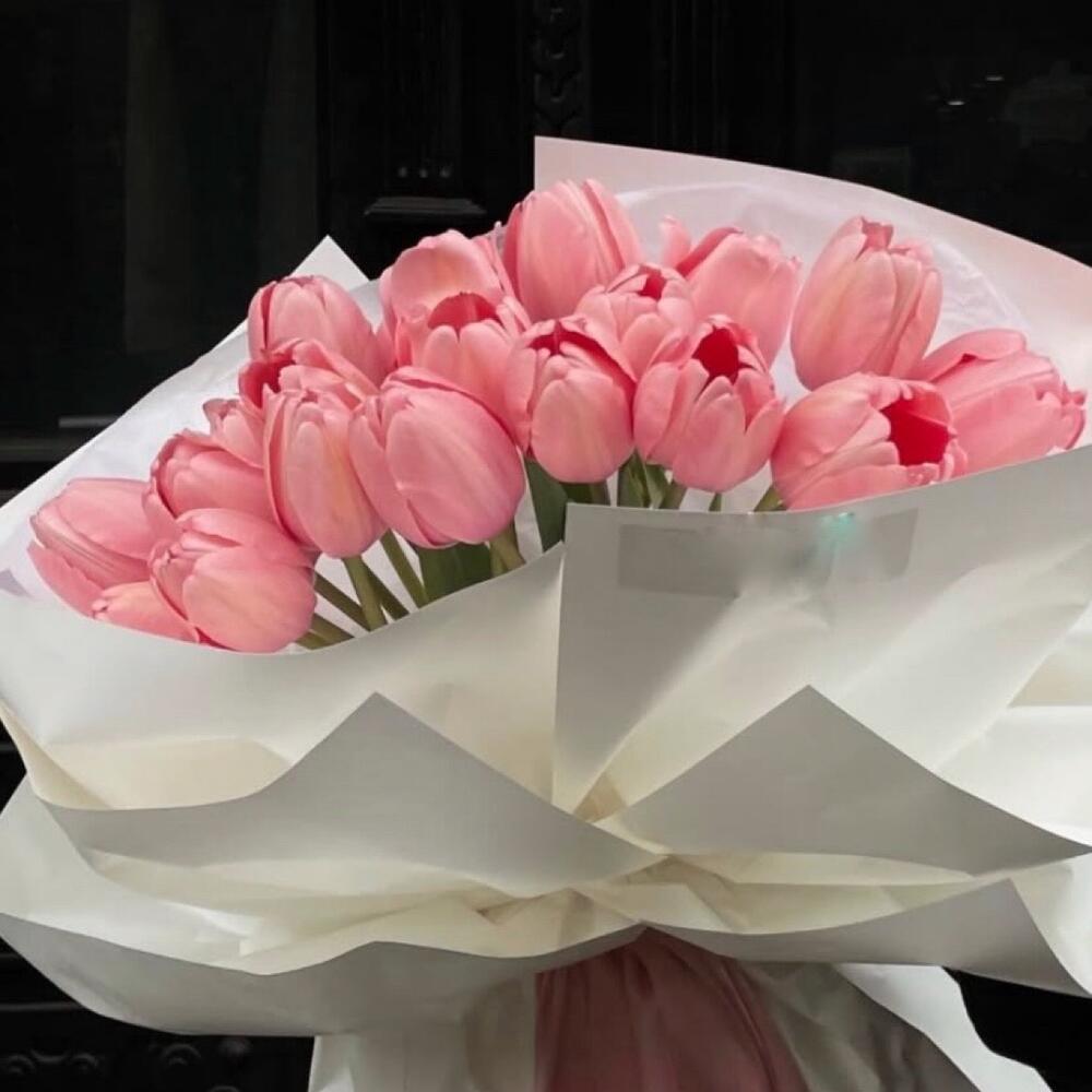 “Совершенный символ любви в День святого Валентина – нежные тюльпаны, как трепетные чувства, окутанные заботой. Пусть этот букет станет признанием в самых искренних эмоциях! ❤️🌷”