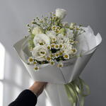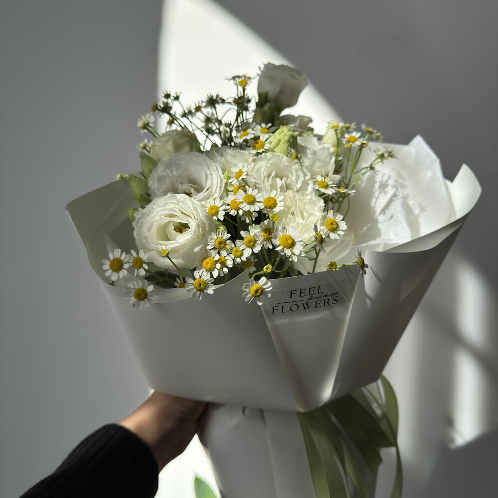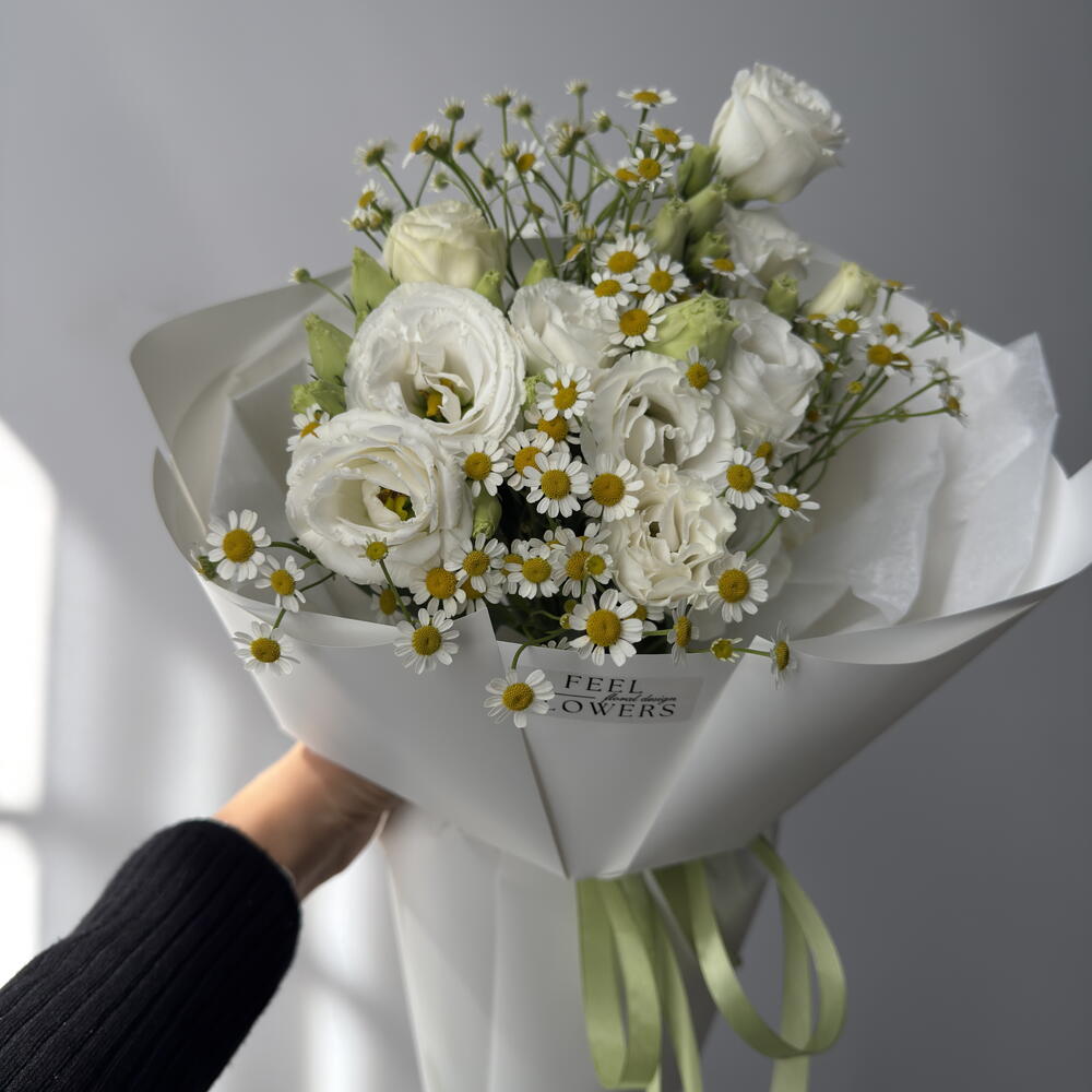 Eustoma white - 3 ud. tanacetum - 2 ud.