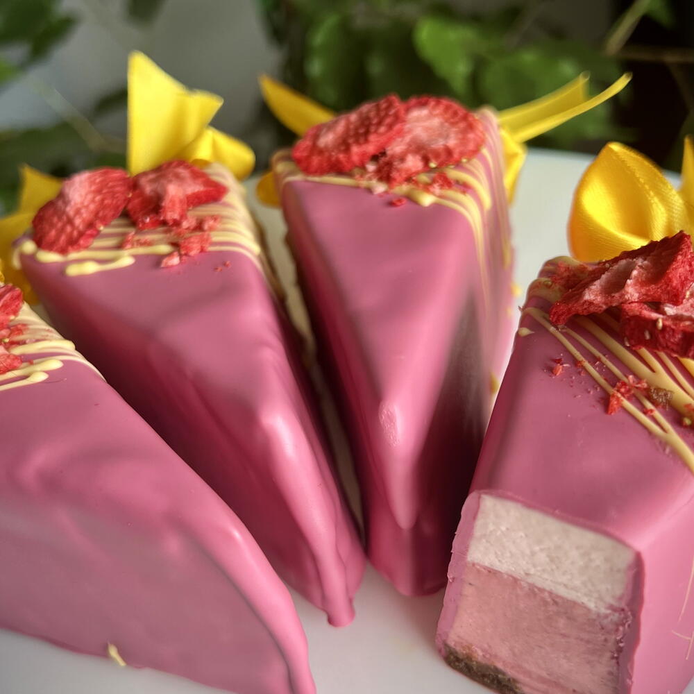 Delikatny sernik z przewiewnym nadzieniem truskawkowym i smakiem Baileys. Chrupiąca, krucha baza doskonale uzupełnia kremową masę serową z naturalnym puree truskawkowym i nutą likieru. Pokryty błyszczącym lukrem czekoladowym. Deser dla prawdziwych smakoszy, który łączy klasykę sernika z wyrafinowanym smakiem jagód i kremowego likieru. W zestawie 5 sztuk