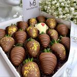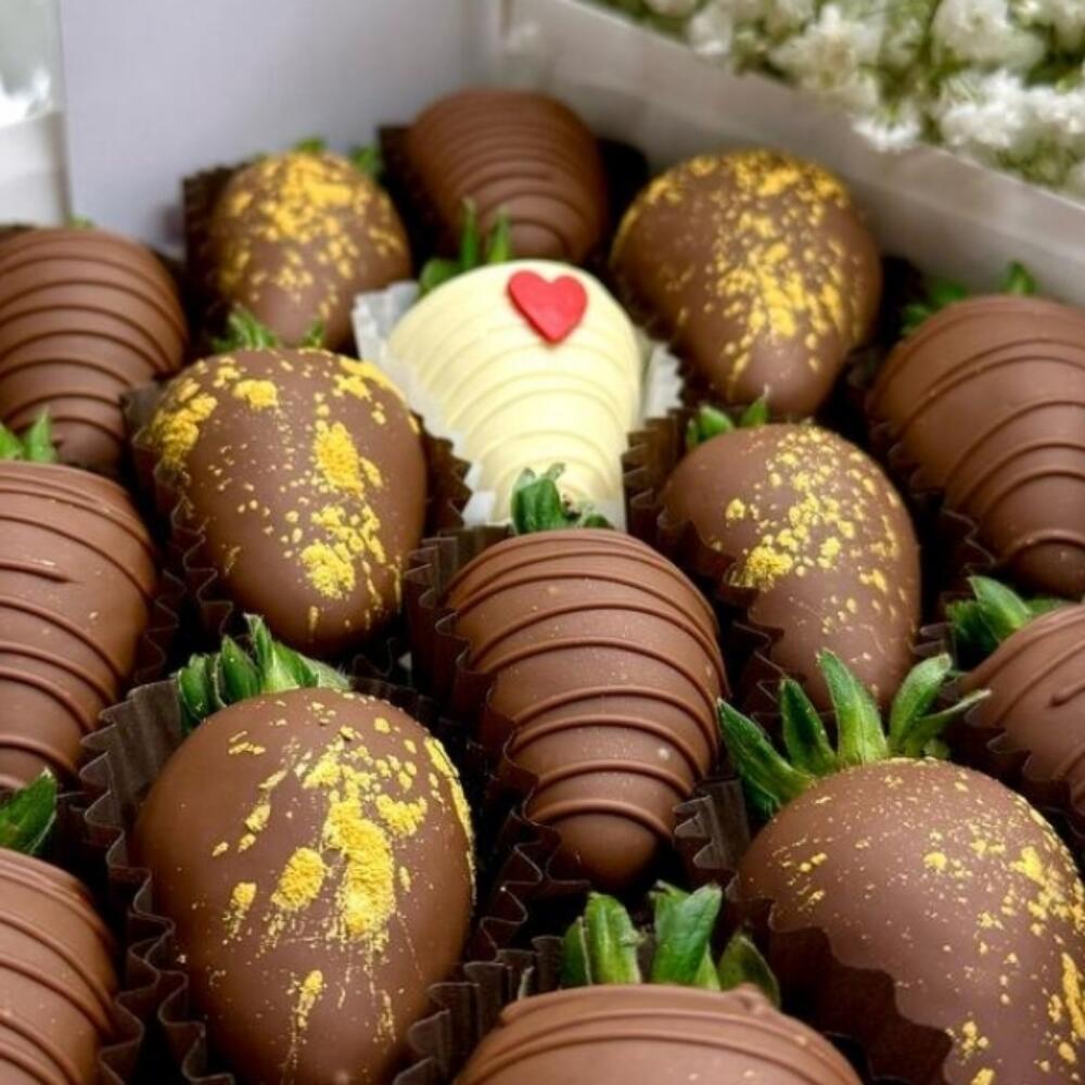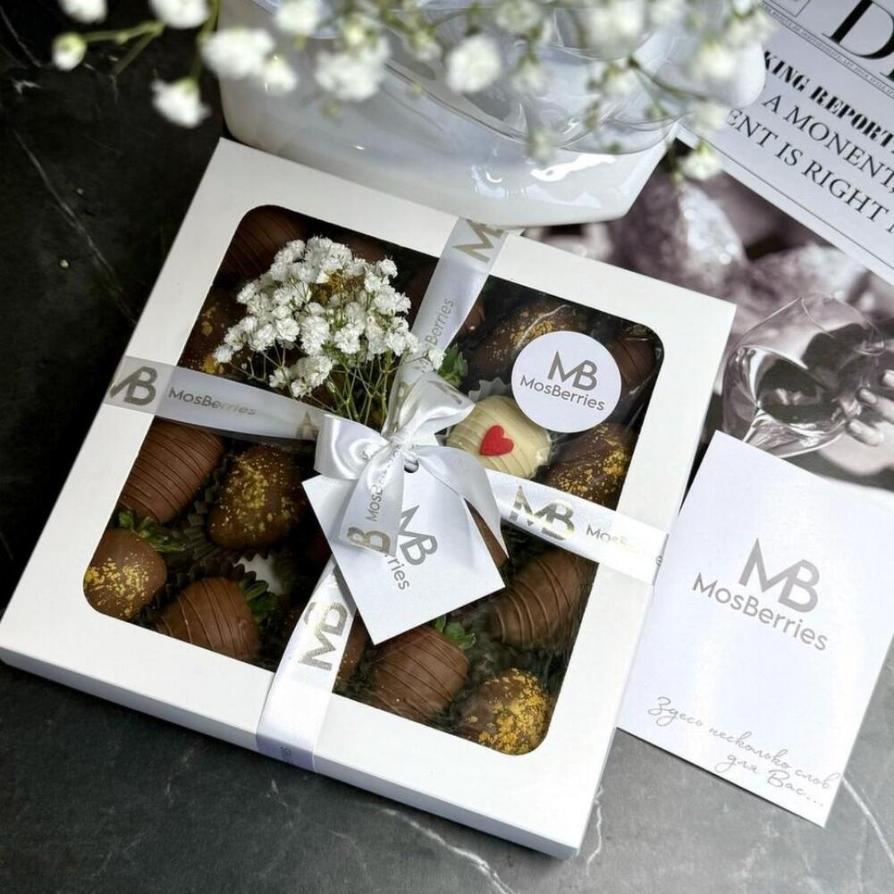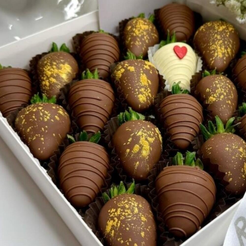 Состав -20шт. (Количество зависит от размера (+ -Греческая клубника в молочном бельгийском шоколаде -Клубника свежая -Коробка -Лента атласная -пакет подарочный какао-масло, тертое какао, сухое цельное молоко, сахар, натуральные лецитин и ваниль.